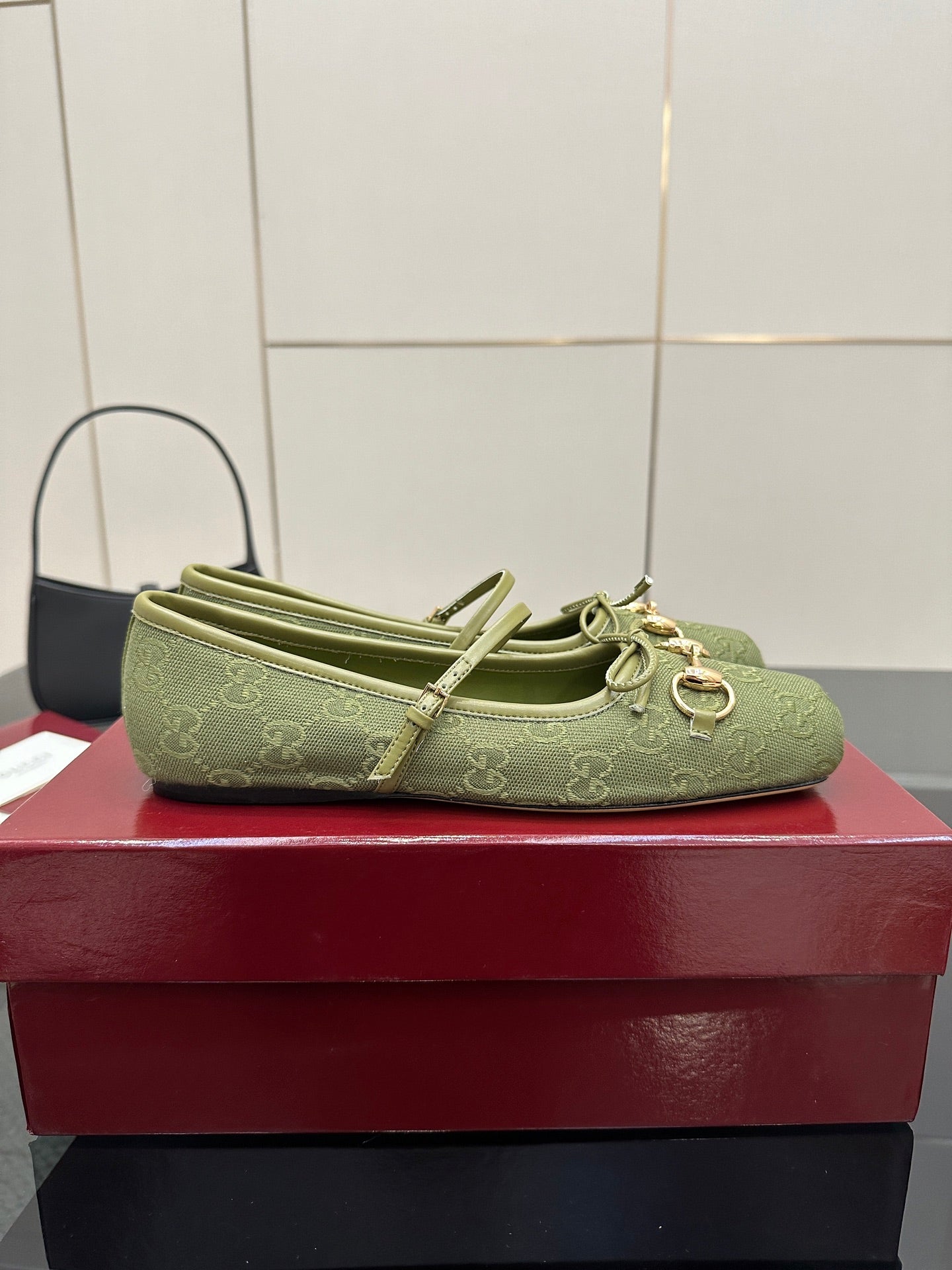 GC 25 Horsebit Ballet Flat Green Monogram Canvas