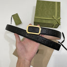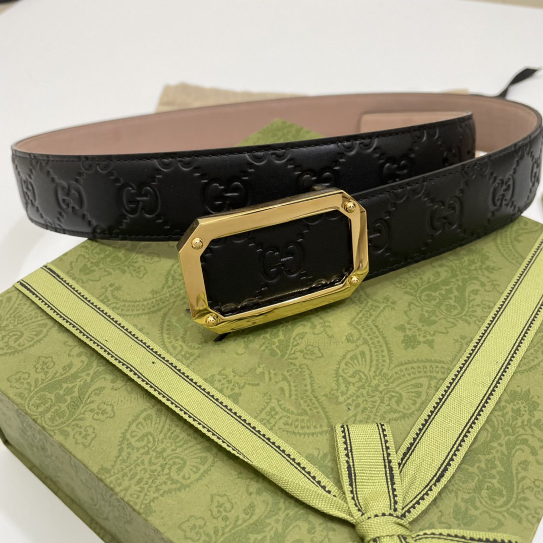 G BELT GOLD SQUARE BUCKLE BLACK LEATHER 3.5CM