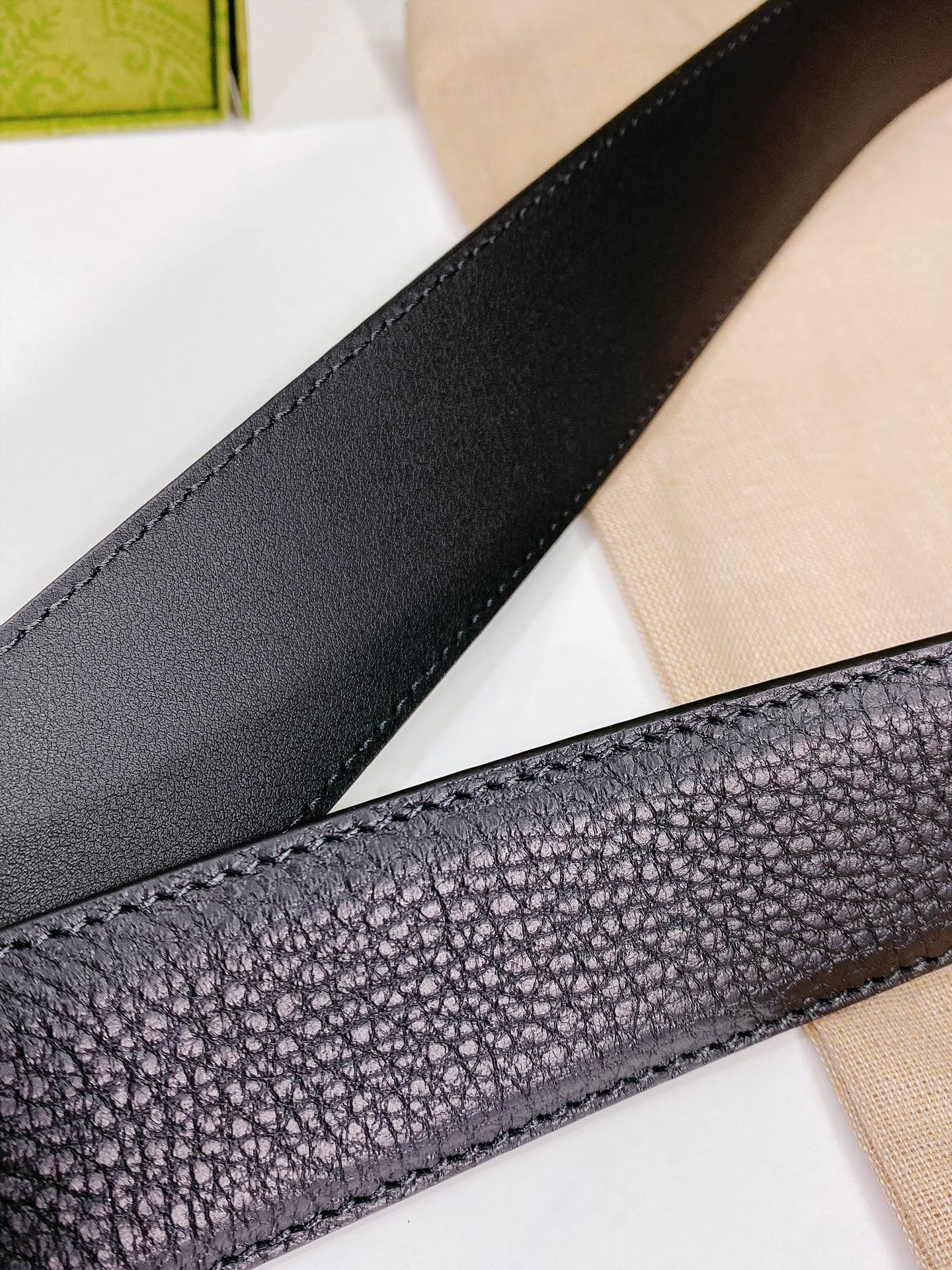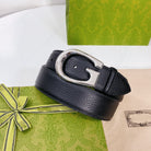 G BELT SILVER BUCKLE BLACK LEATHER 4.0CM
