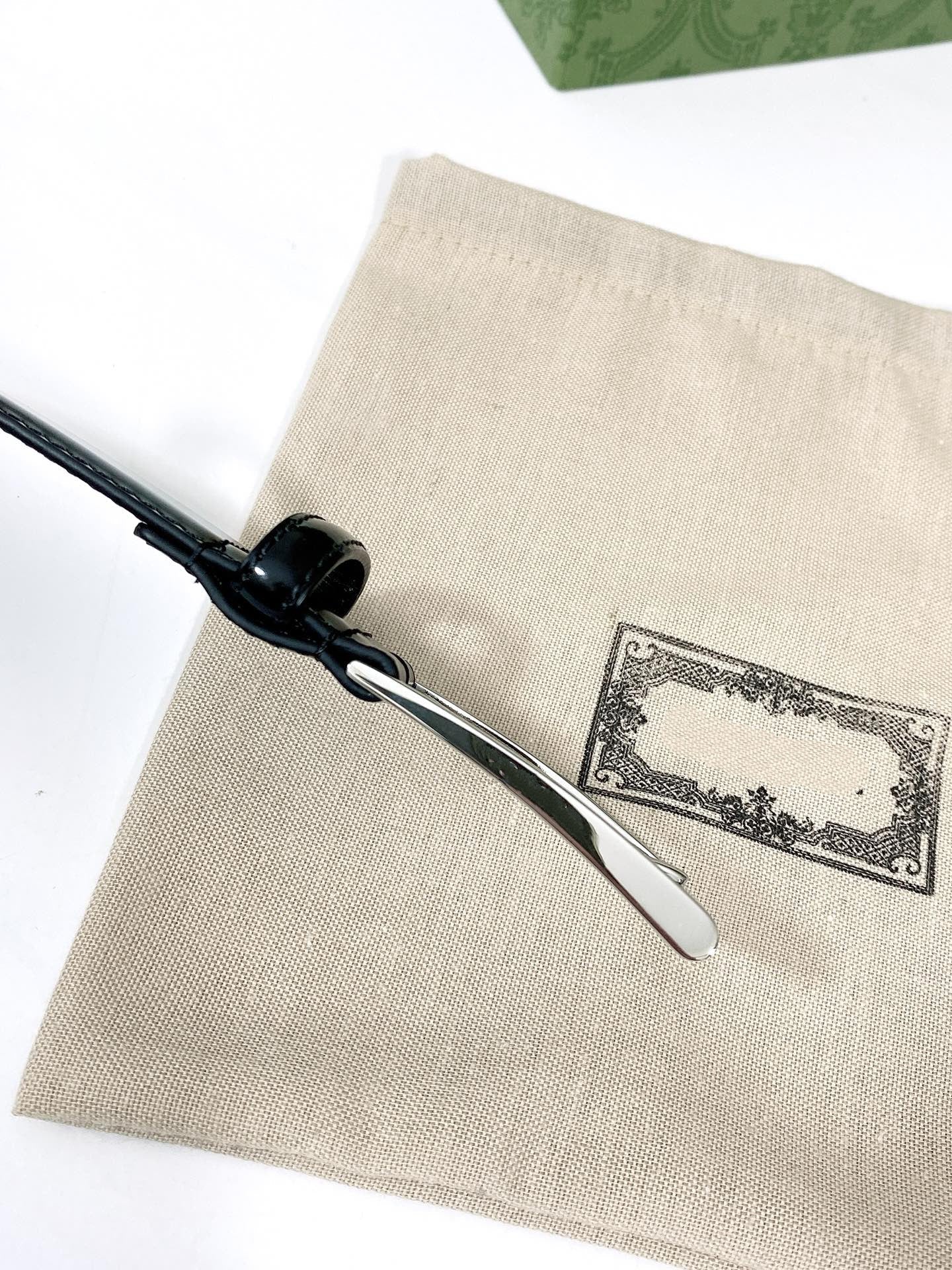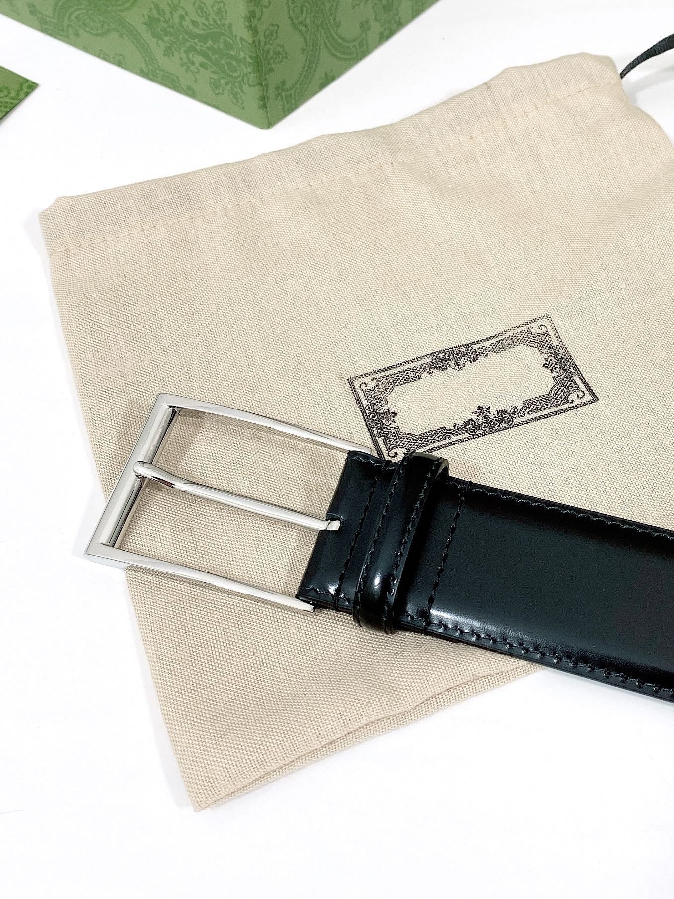 G BELT SILVER SQUARE INSTALL BUCKLE BLACK LEATHER 4.0CM