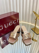 GC 25 Interlocking G Heeled Sandal Nude Patent Leather 294640