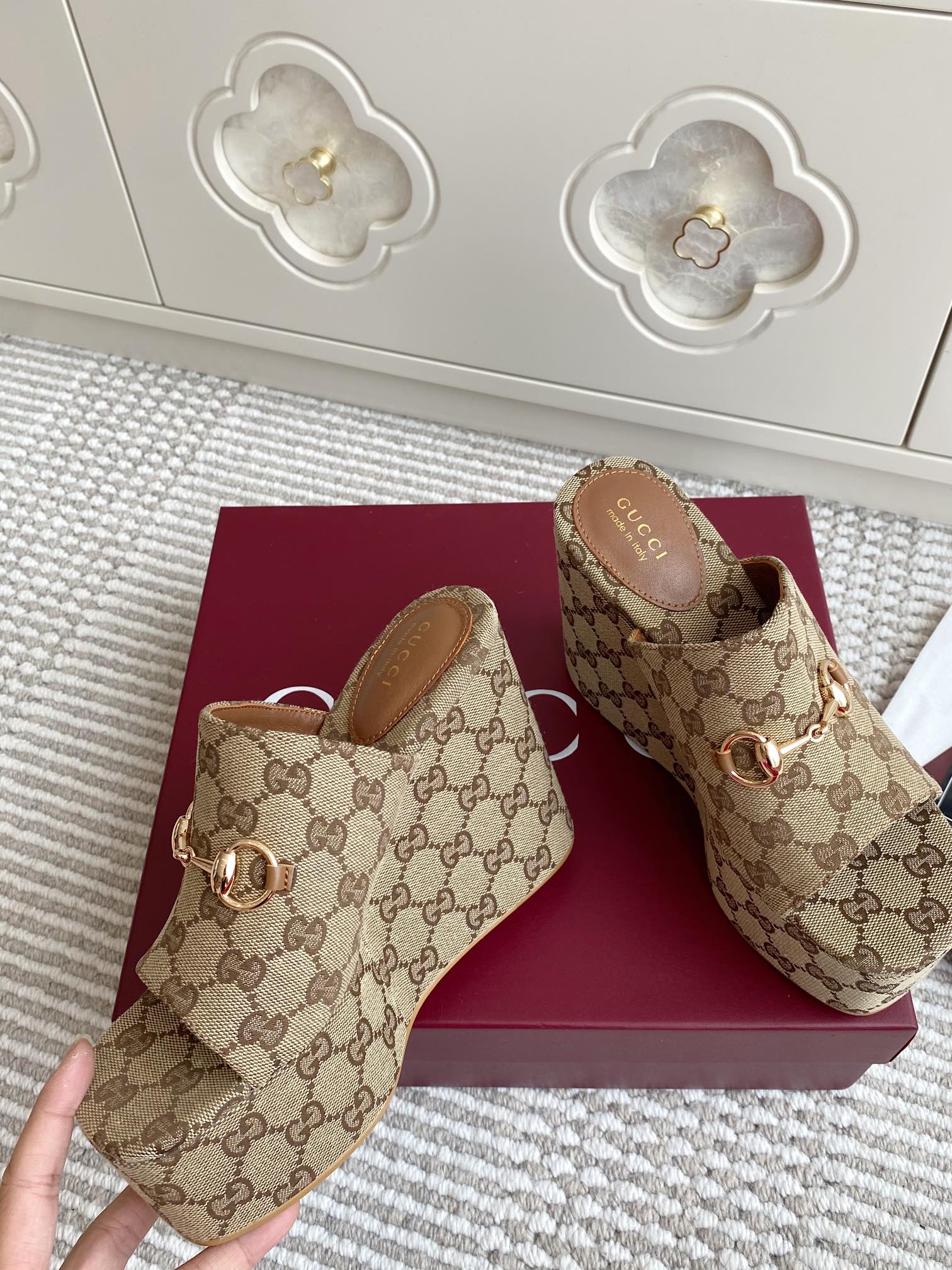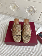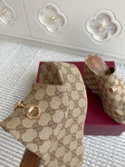 GC 25 Wedge With Horsebit Sandal Beige and Dark Brown Canvas 291029