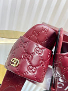 GC Double G Slide Sandals Rosso Ancora Red Embossed Leather 294634
