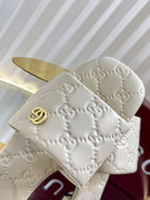 GC Double G Slide Sandals White Embossed Leather 294635