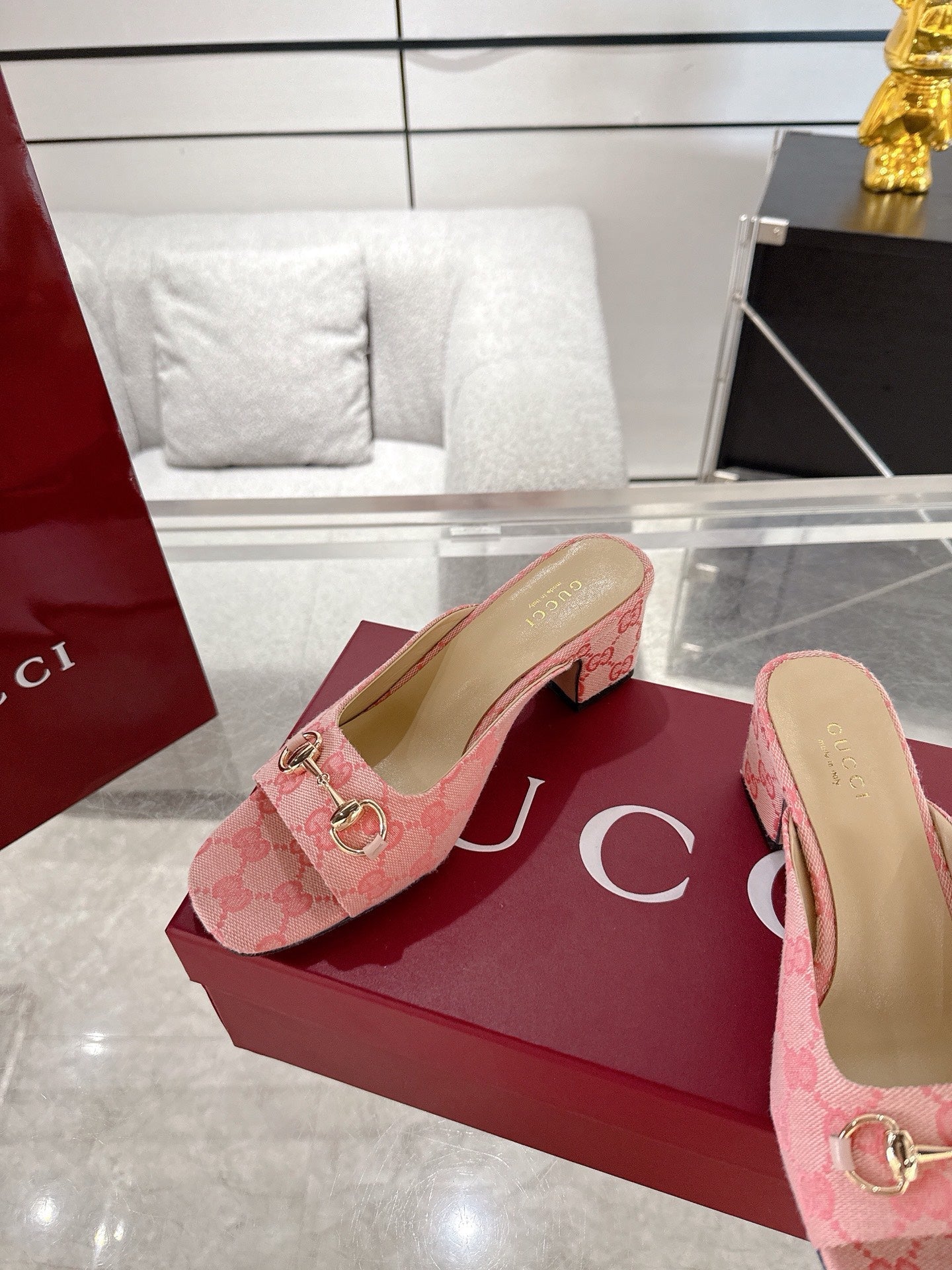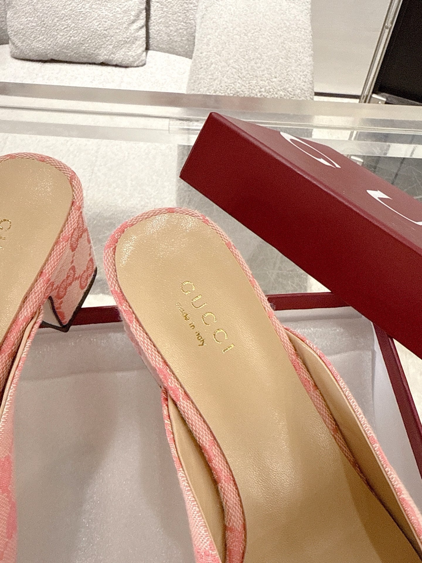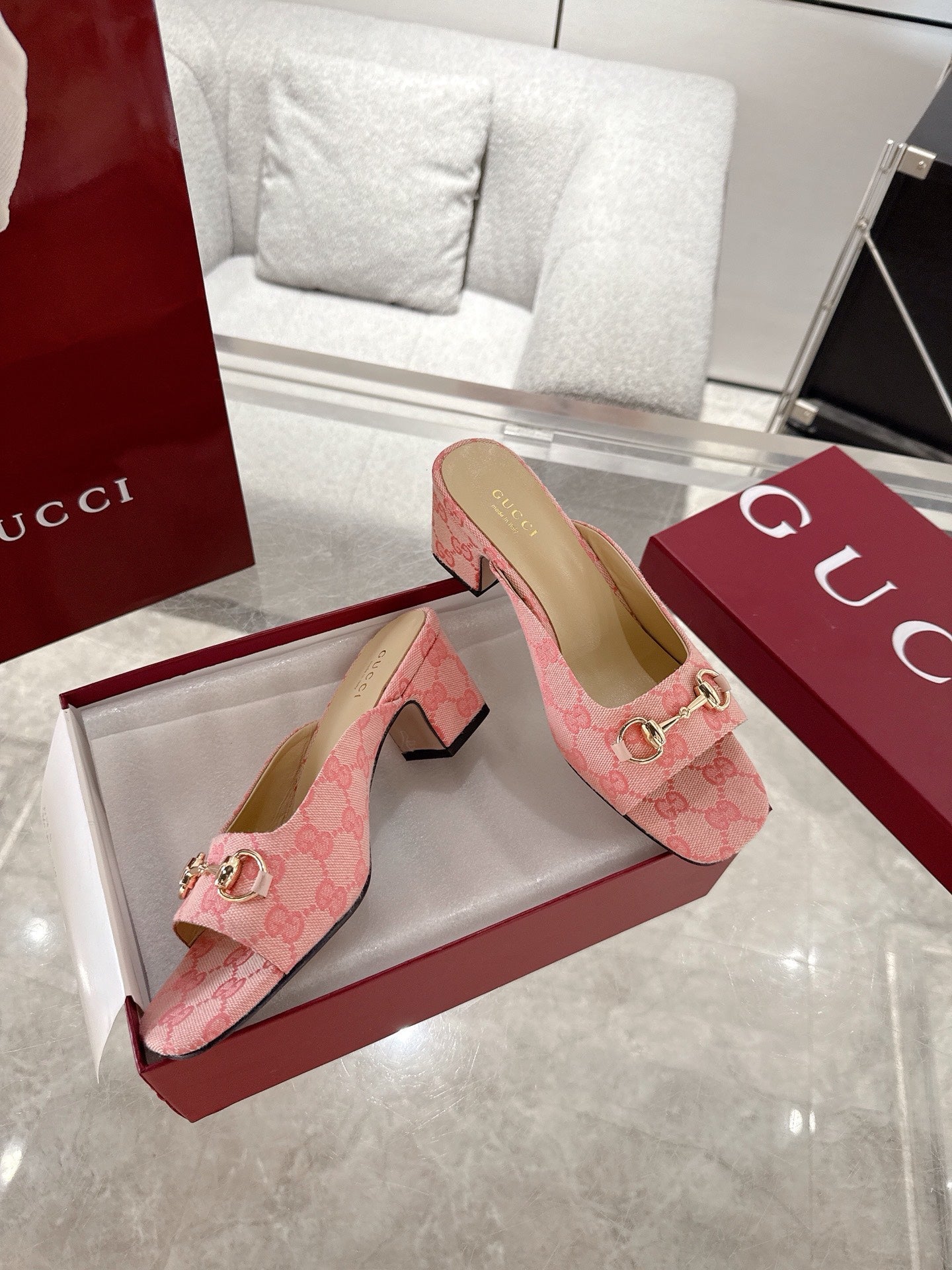GC Horsebit Slide Pink Canvas Cowhide 292407