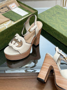 GG 120 INTERLOCKING G SANDAL WHITE CALFSKIN
