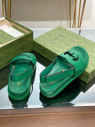 GG INTERLOCKING G CUT OUT SANDAL JADE GREEN LAMBSKIN