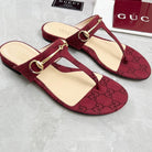 GC 25 Horsebit Thong Sandals Red Canvas Leather 293853