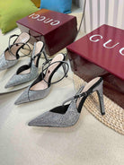 GC Crystal-Embellished Slingbacks Black Silk Sheepskin 294611
