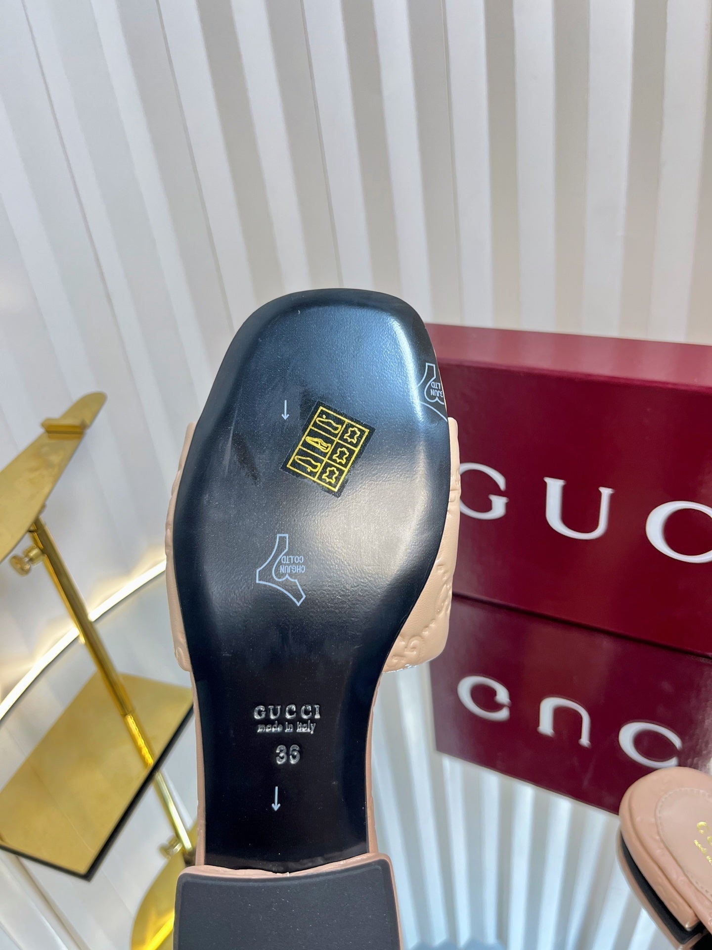 GC Double G Slide Sandals Nude Embossed Leather 294632