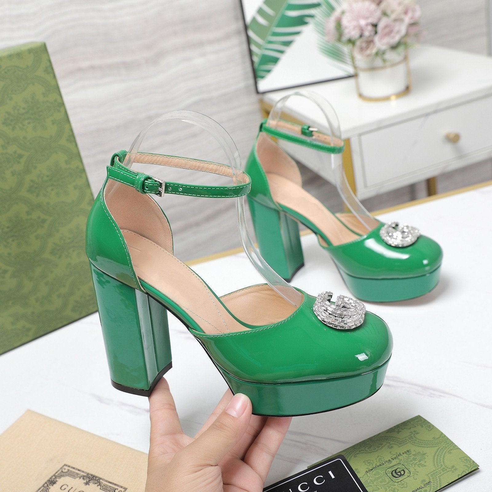 GG BAMBOO BUCKLE FLAT SANDALS GREEN