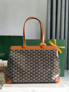 BELLECHASSE BIAUDE PM BAG 36 IN BLACK GOYARDINE CANVAS AND TAN CALFSKIN TRIM