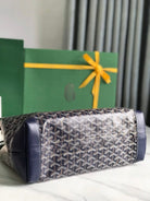 BELLECHASSE BIAUDE PM BAG 36 IN NAVY BLUE GOYARDINE CANVAS AND CALFSKIN TRIM