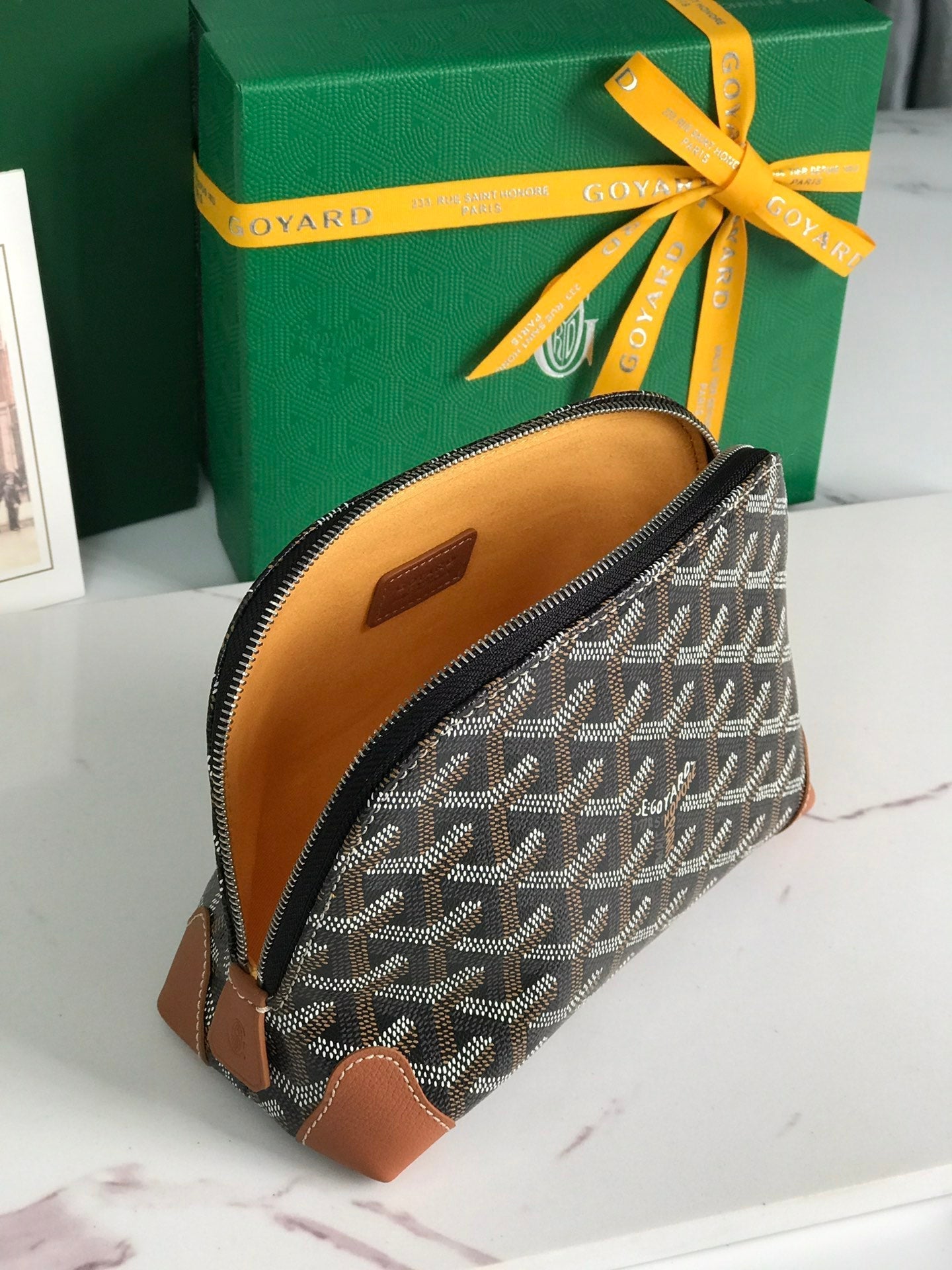 VENDÔME COSMETIC POUCH 17 IN BLACK GOYARDINE CANVAS AND TAN CALFSKIN TRIM