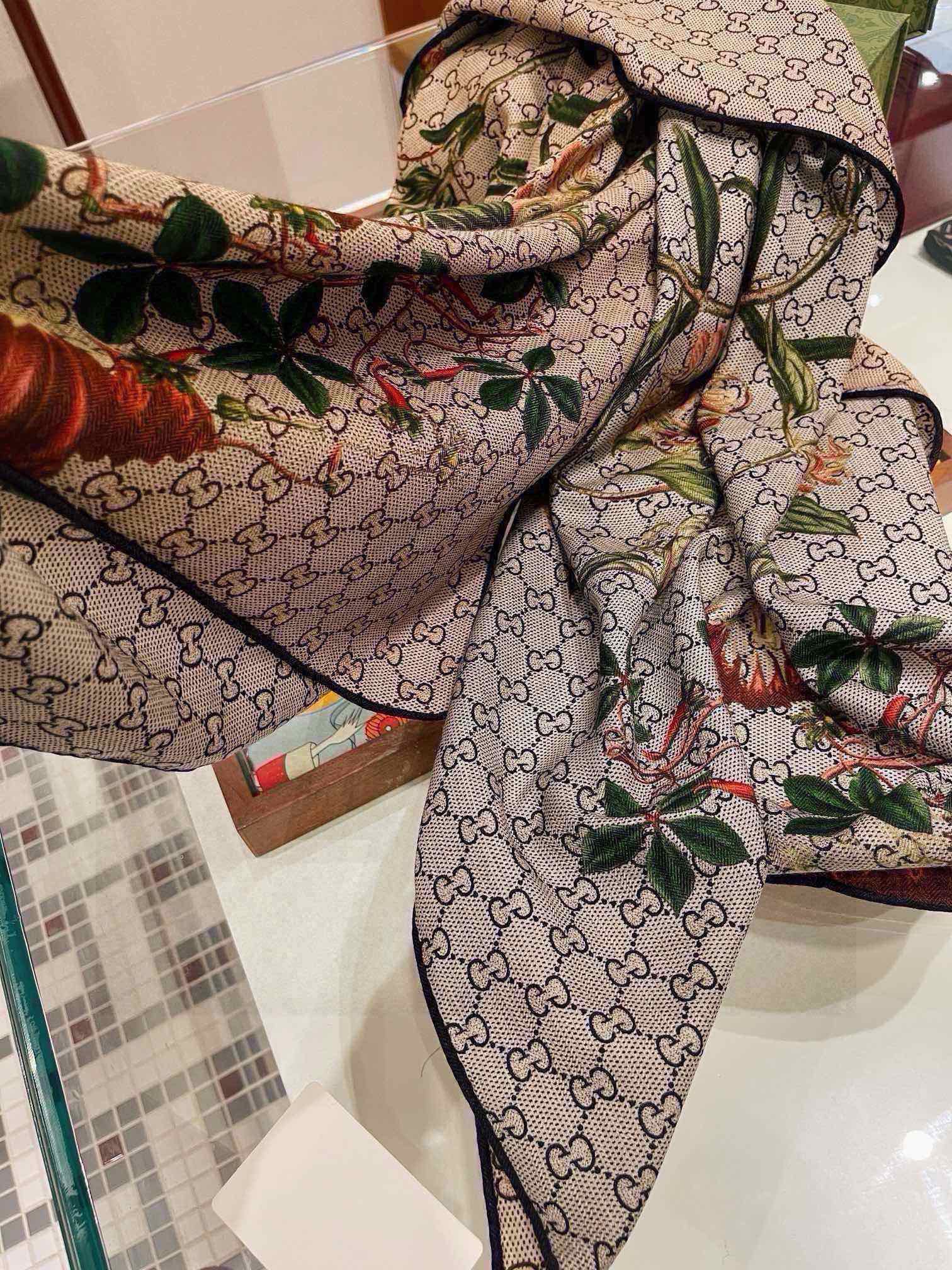 SCARF 180 CM IN KHAKI BROWN MONOGRAM CASHMERE 405276