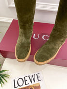 Gucci 25𝐬𝐬 hight boots olive green suede 435371