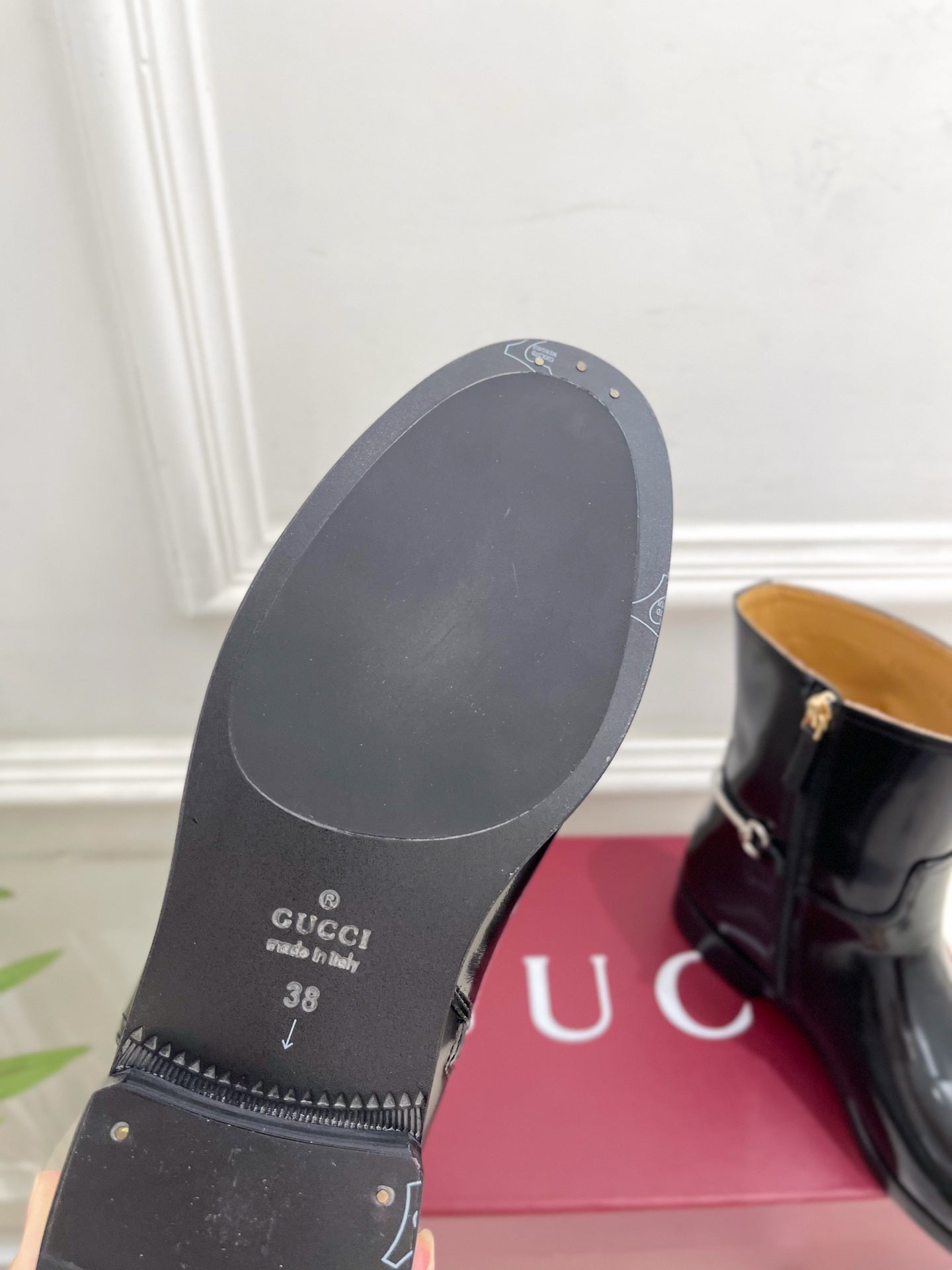 Gucci 25𝐬𝐬 horsebit ankle boots black patent calfskin 435384