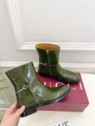 Gucci 25𝐬𝐬 horsebit ankle boots dark olive green patent calfskin