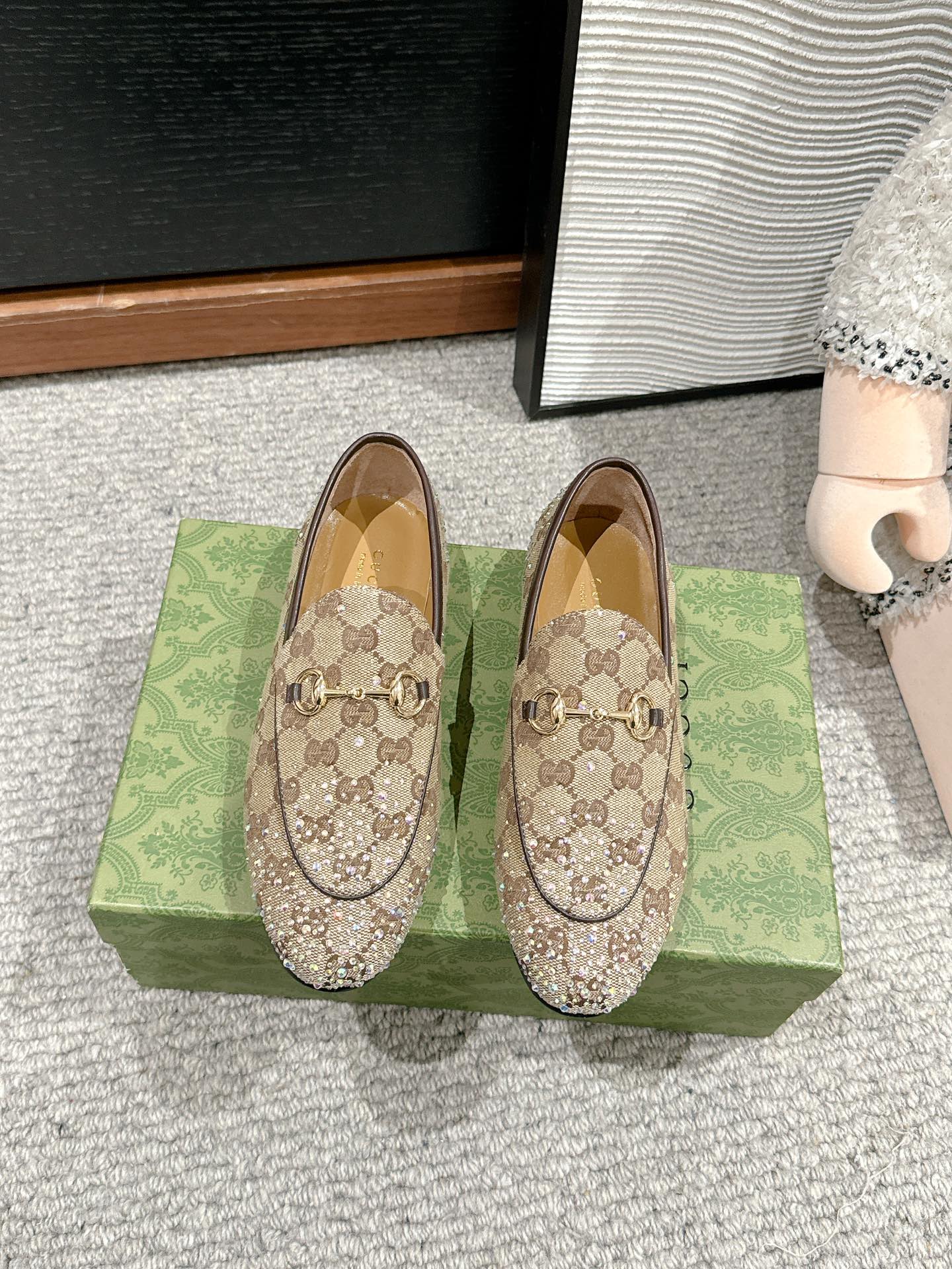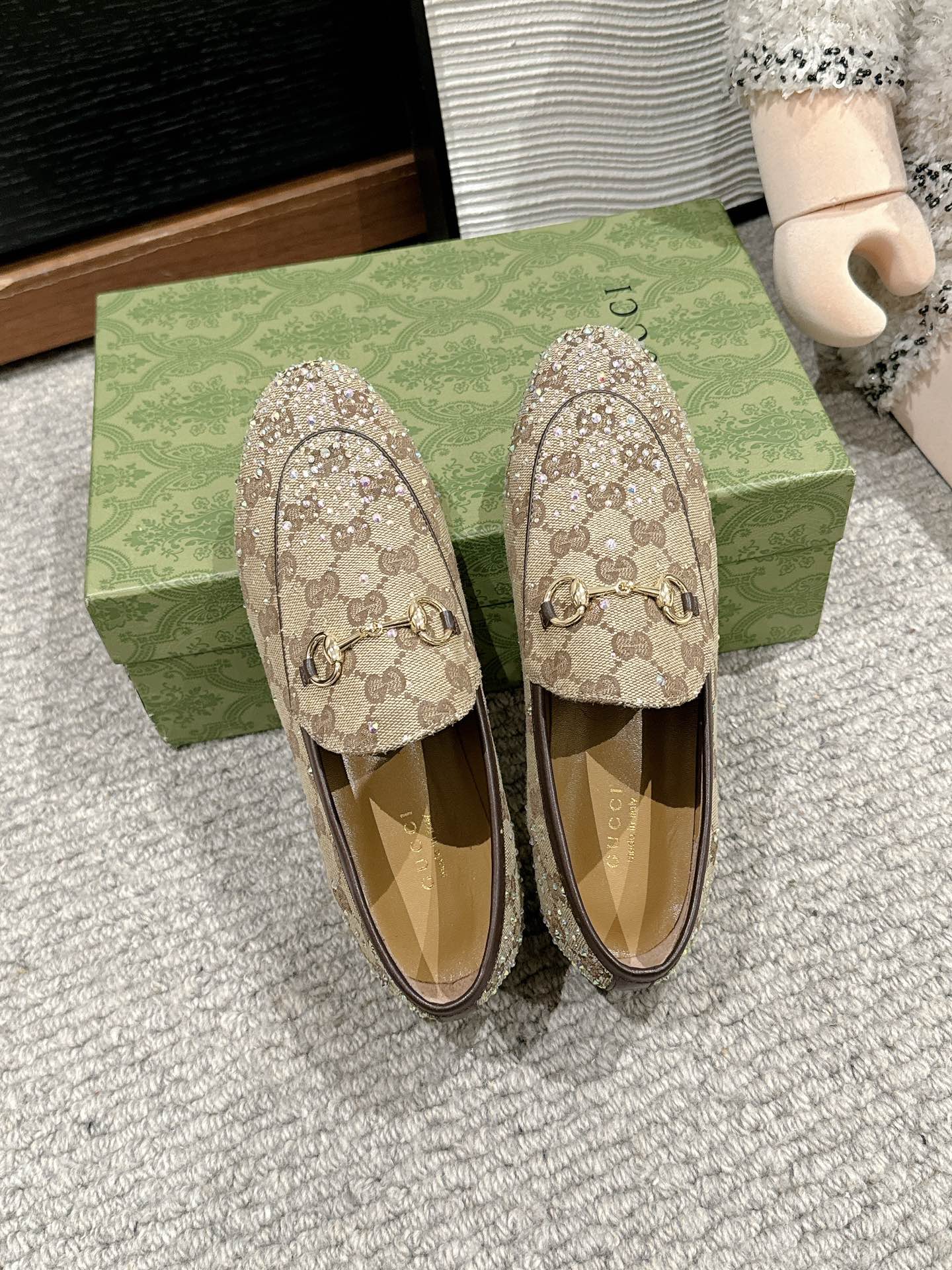 Horsebit Jordaan Loafer Beige Ebony Canvas Crystal-Embellished