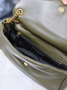 CALYPSO CHAIN BAG 26 IN ARMY GREEN SMOOTH LAMBSKIN