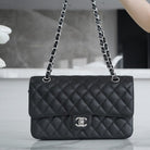 CLASSIC FLAP 25 BLACK CAVIAR SILVER HARDWARE