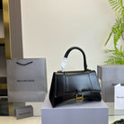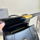 HOURGLASS HANDBAG 22 IN BLACK SHINY BOX CALFSKIN GOLD HARDWARE