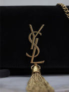 KATE MEDIUM TASSEL 26 IN BLACK SUEDE COPPER HARDWARE