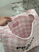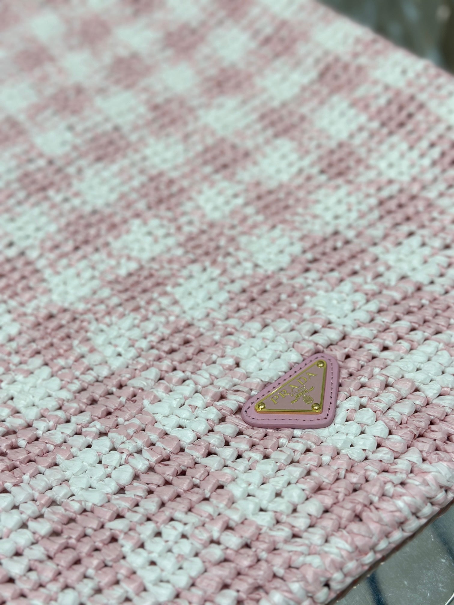 LARGE TOTE BAG 45 IN PINK MIX WHITE AND BLACK WOVEN RAFFIA