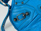 LE CAGOLE SMALL SHOULDER BAG 26 WITH RHINESTONES IN DODPER BLUE LAMBSKIN