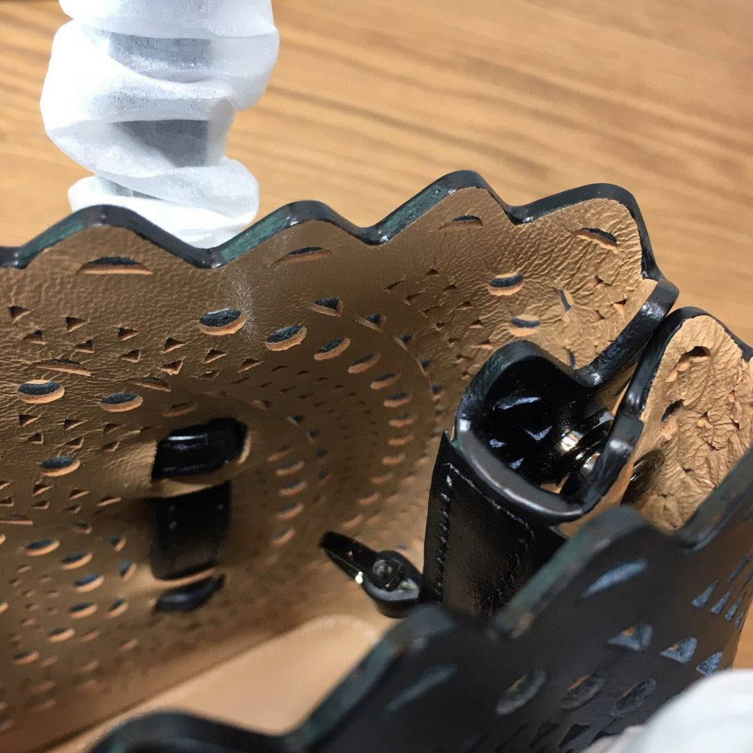 ALAIA Medium Hobo Flat Bag Metal Rivet Black Calfskin 243053