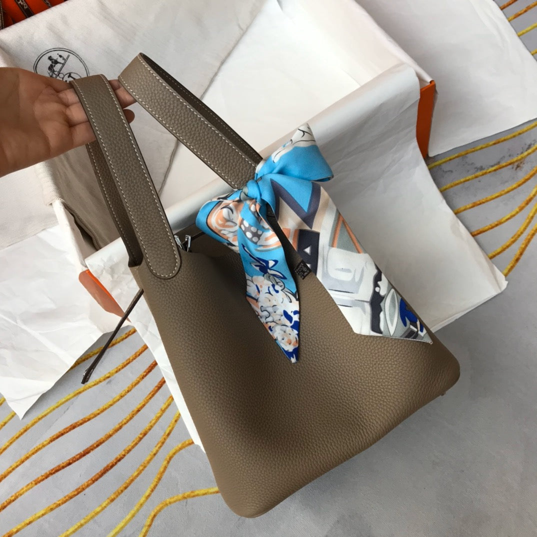 Picotin Lock Etoupe Togo Leather Silver Hardware