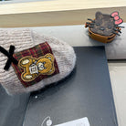 BEANIE HAT IN CAMEL BEIGE WOOL WITH BOW 421255