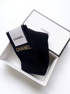 • Classic pair of long socks with letter logo from CC, pure cotton fabric