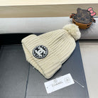 KNIT BEANIE HAT IN BEIGE WOOL 430242