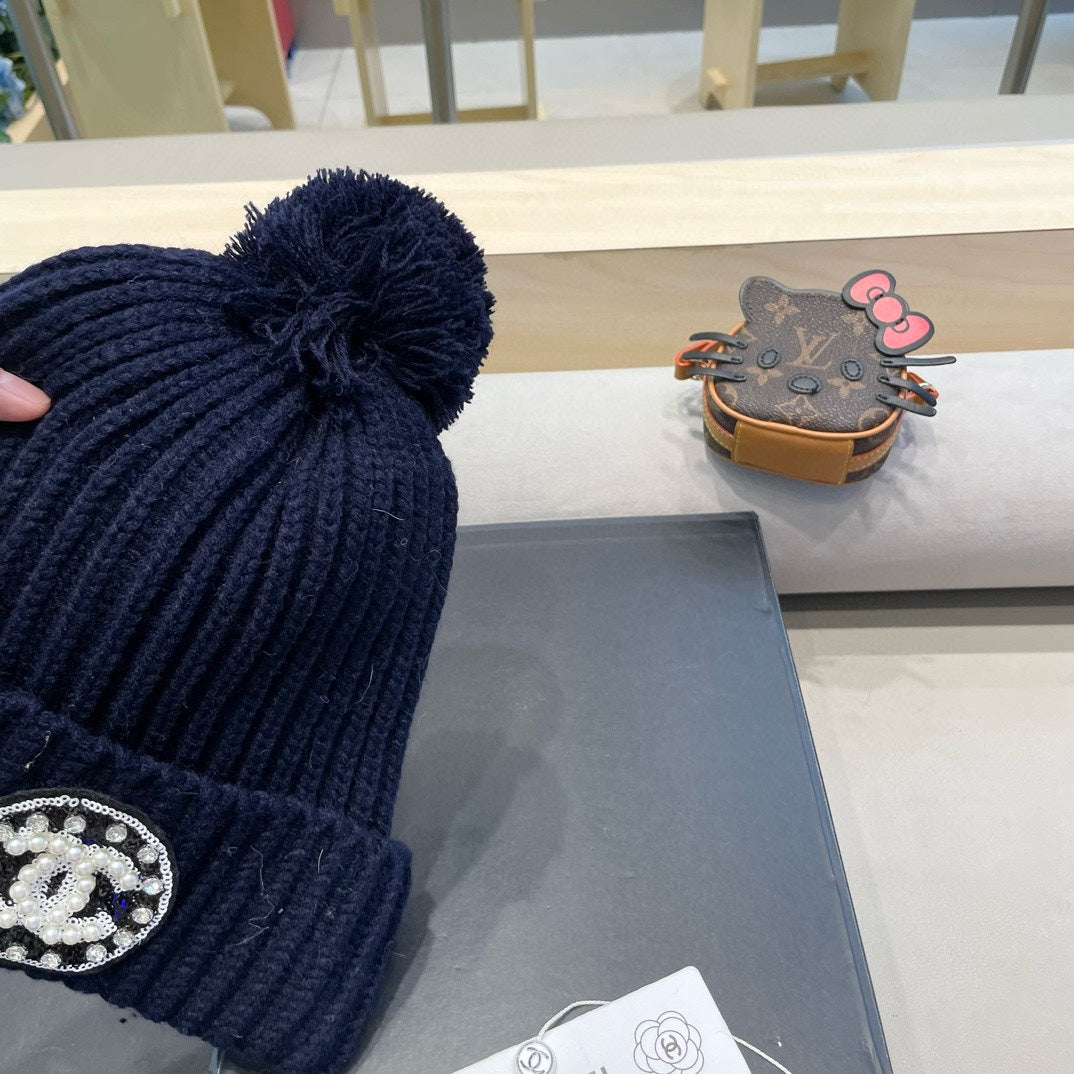 KNIT BEANIE HAT IN NAVY BLUE WOOL 430241