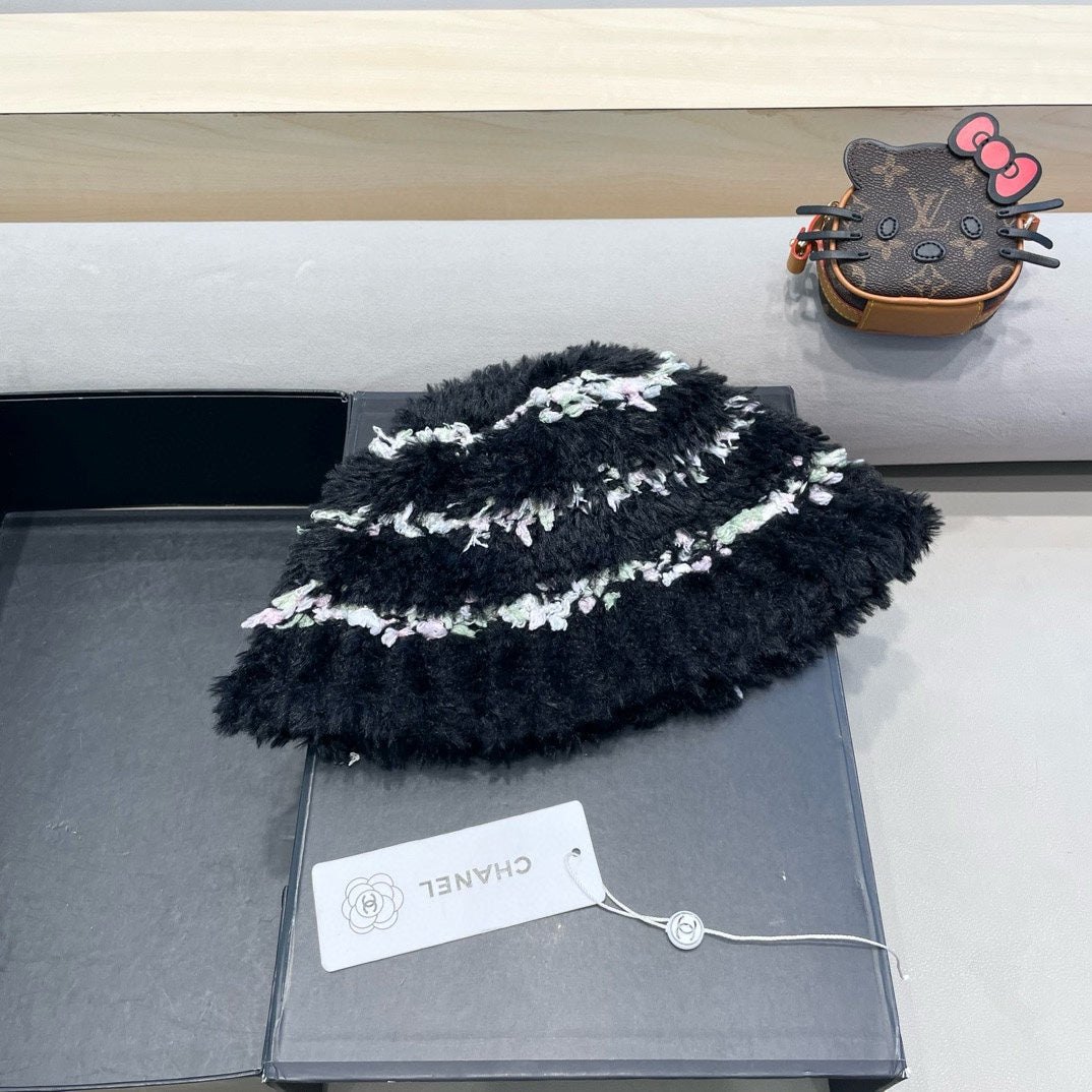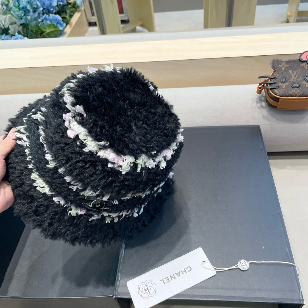 BUCKET HAT IN BLACK MIX WHITE LAMB WOOL 431621