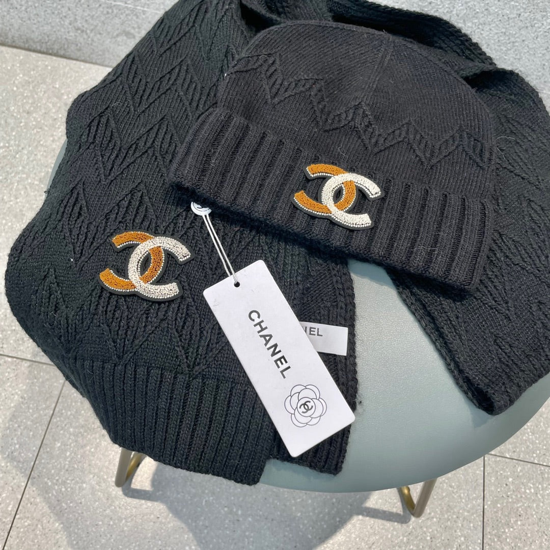 WOOL KNIT HAT AND SCARF SET BLACK 420828