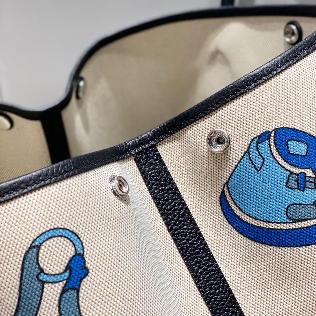 HM Garden Party 36 Bleu Indigo Canvas and Negonda Calfskin 243412