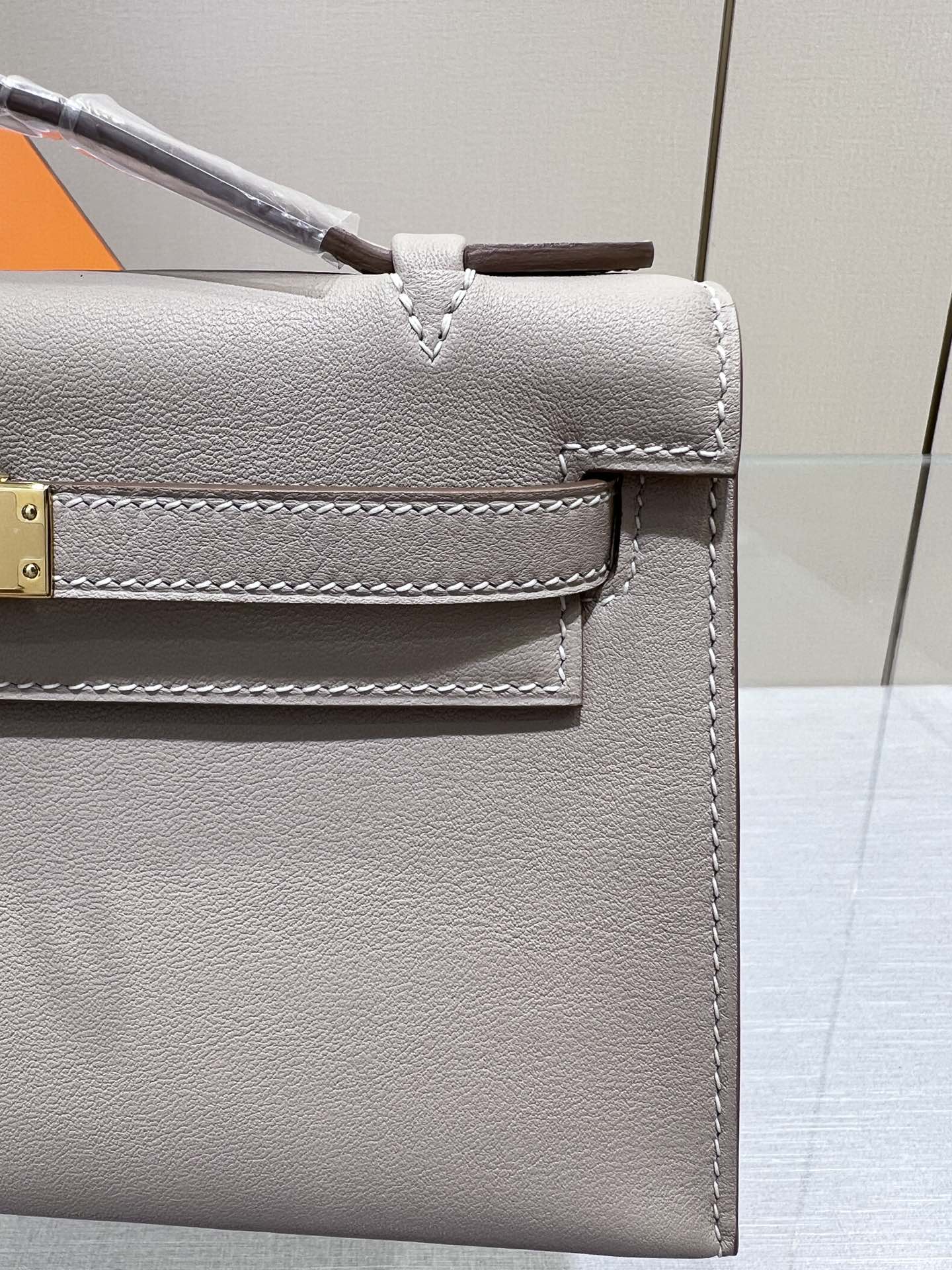 HM KELLY POCHETTE 22CM GREY SWIFT GOLD HARDWARE
