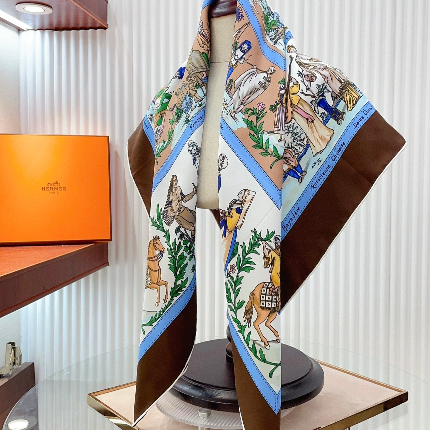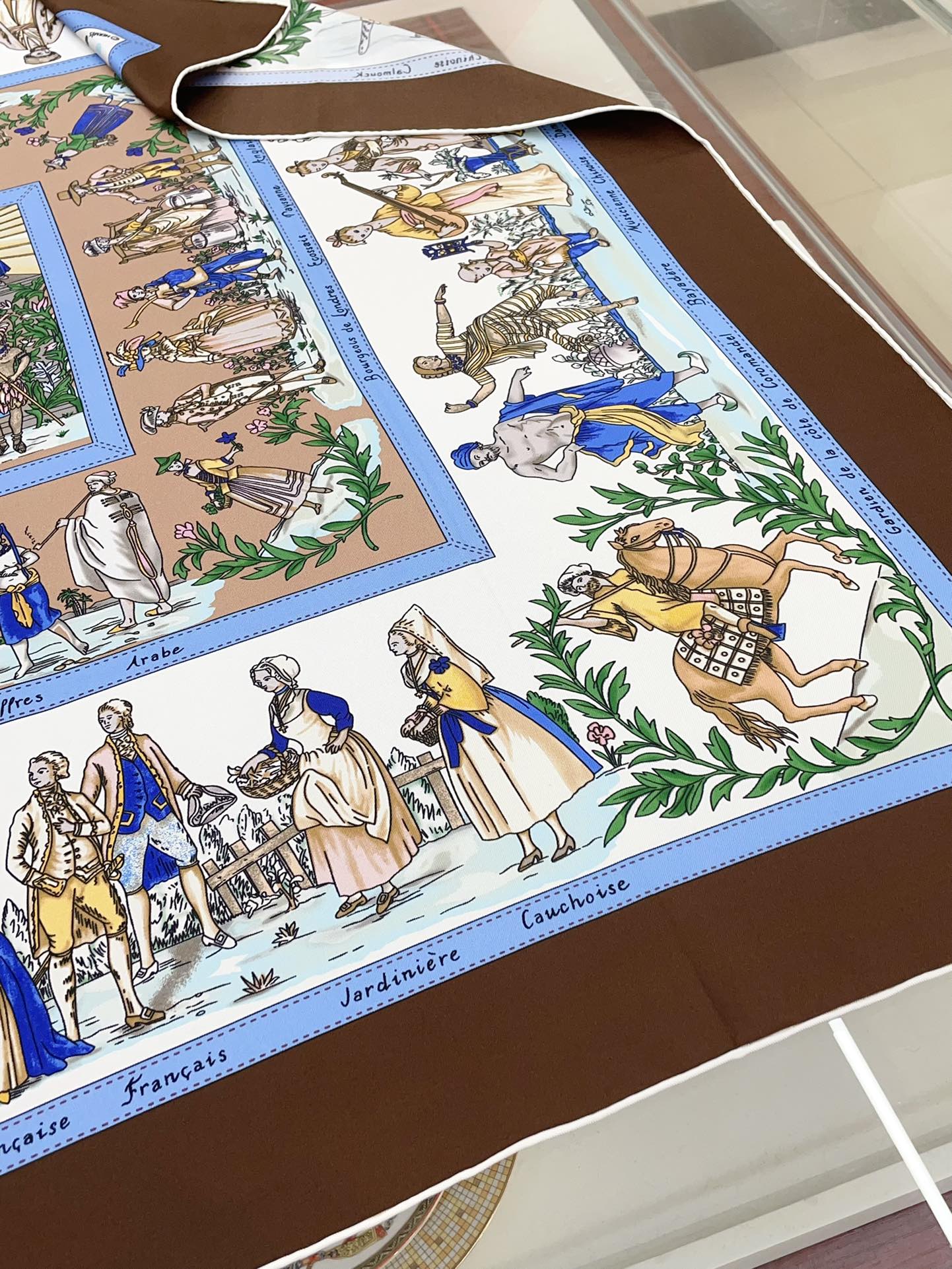 Costumes Civils Actuels Scarf 90 CM In White Colorful Silk Twill 249934