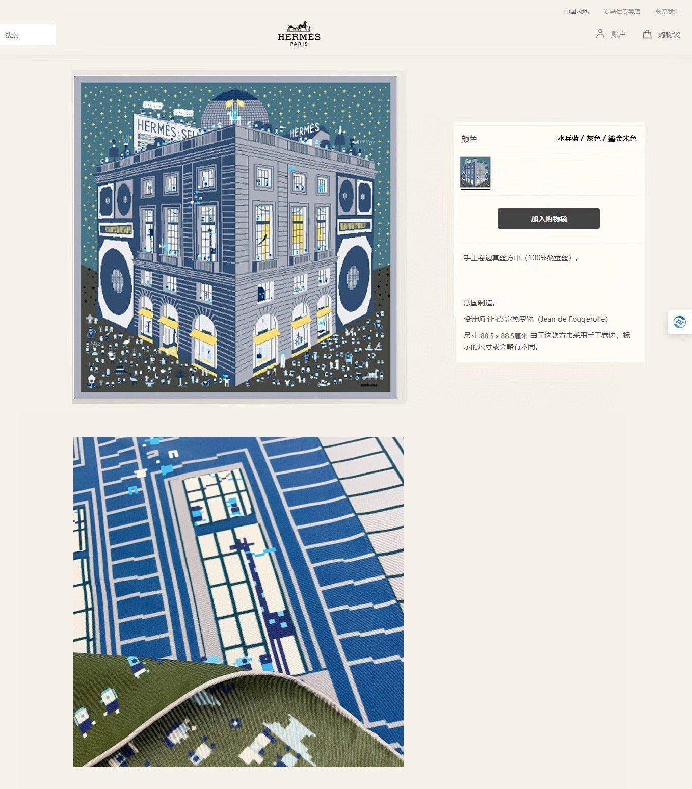 Faubourg Party Scarf 90 CM In Blue Colorful Silk Twill 198582