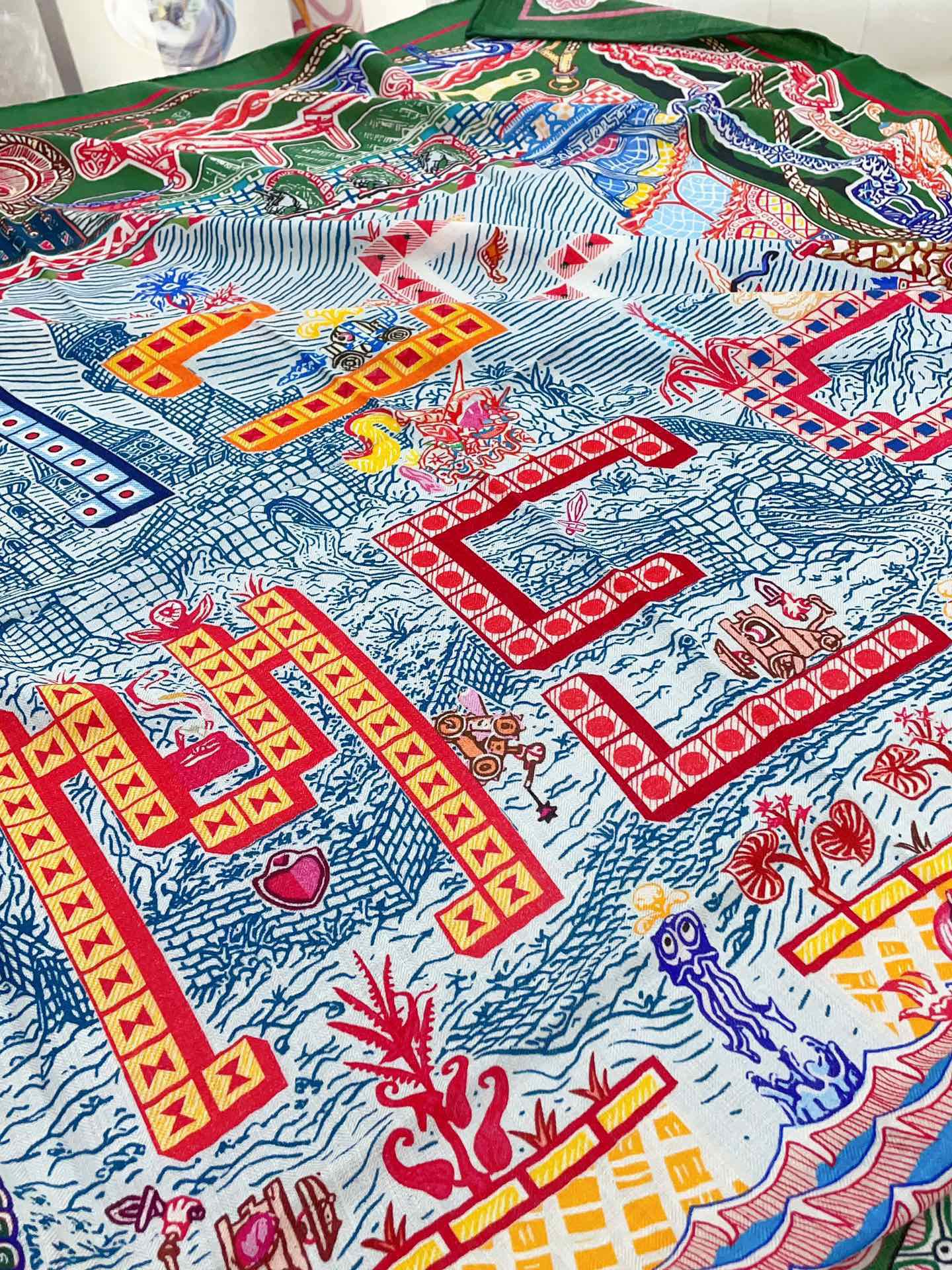 Gavroche Super Silk Quest Détail Scarf 140 CM In Green Colorful Cashmere And Silk 236108
