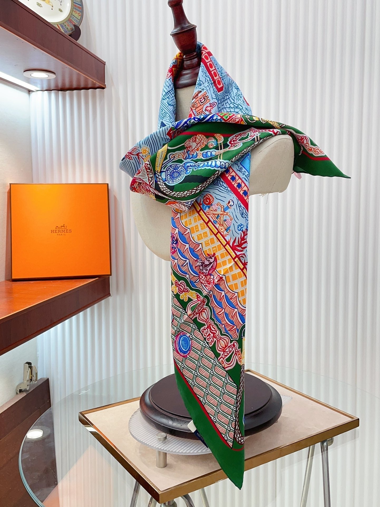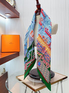 Gavroche Super Silk Quest Détail Scarf 90 CM In Green Colorful Silk Twill 274213
