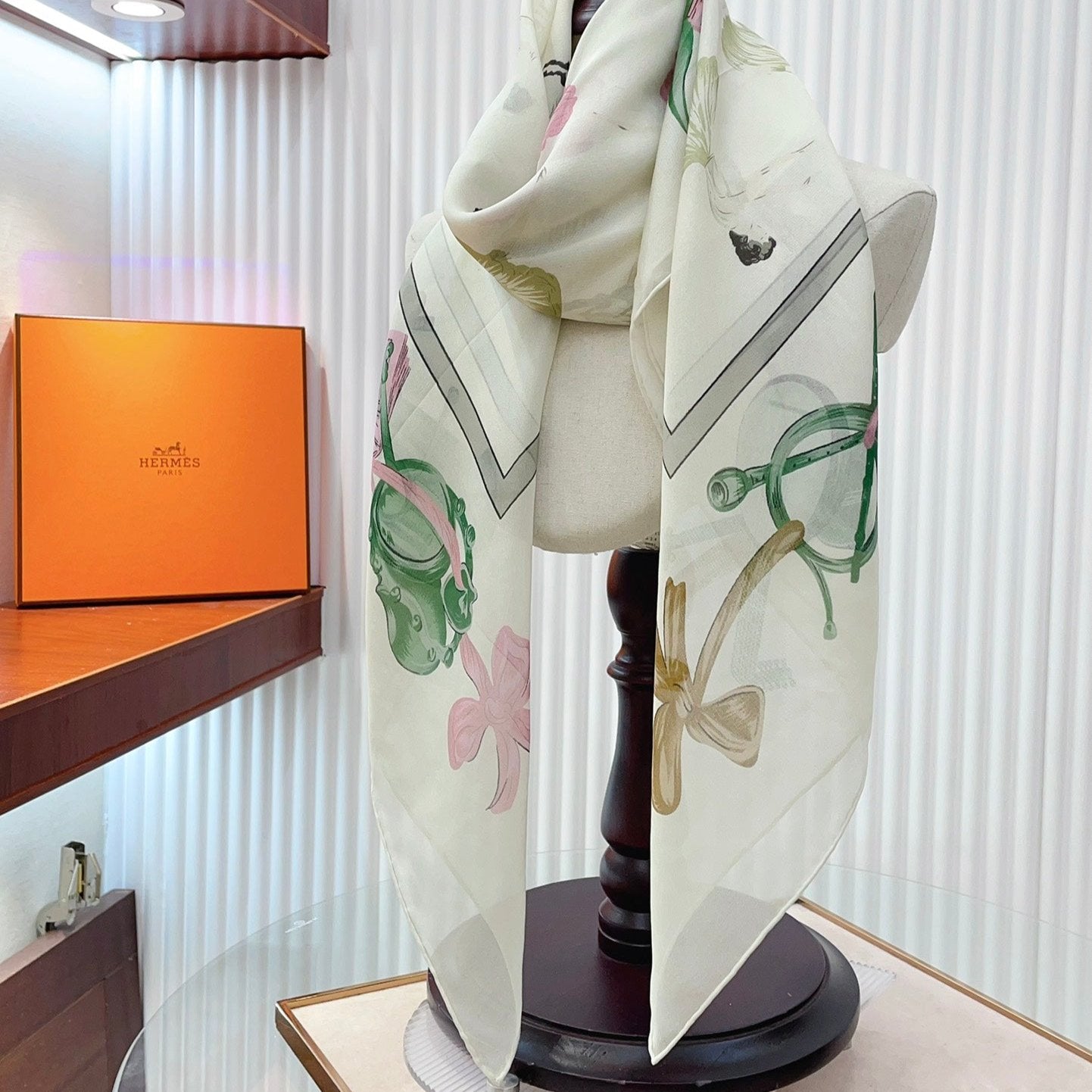 Scarf 110 CM In White Colorful Voile Silk 193825