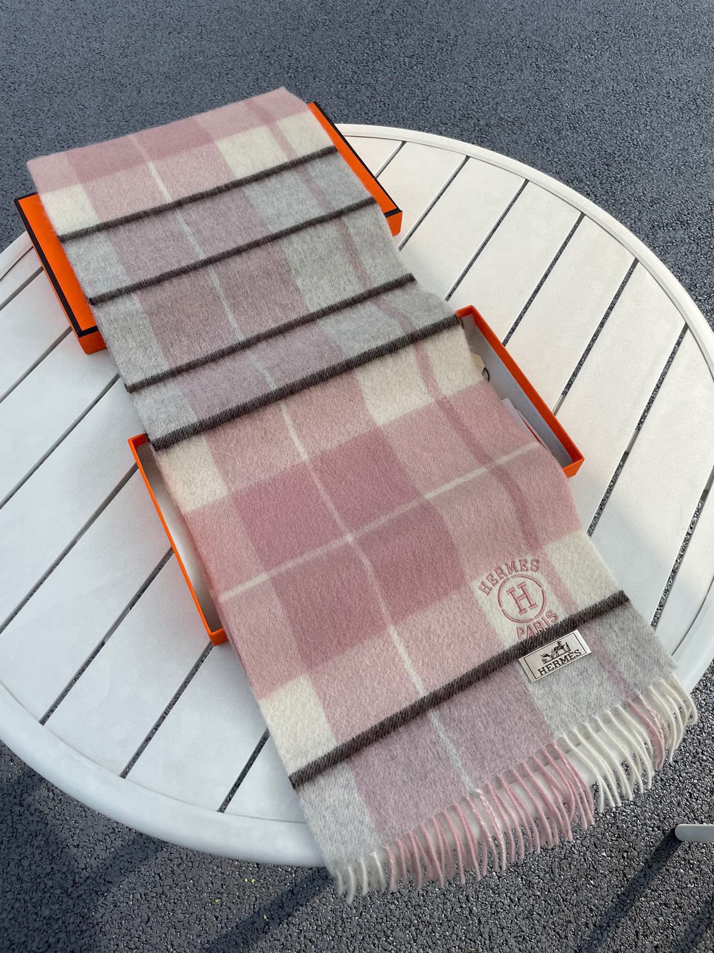 Scarf 180 CM In Light Grey White Mix Pink Caro Cashmere