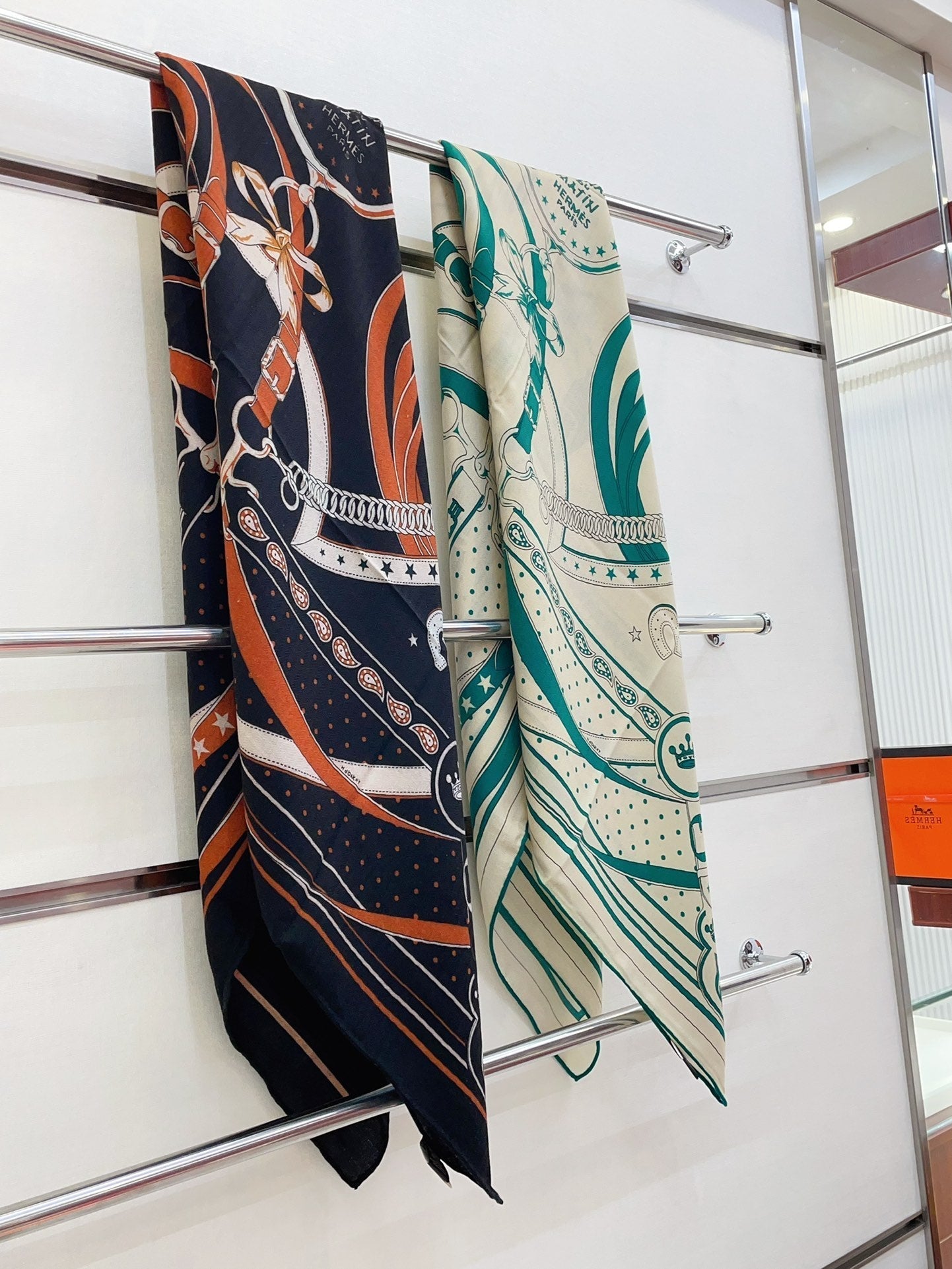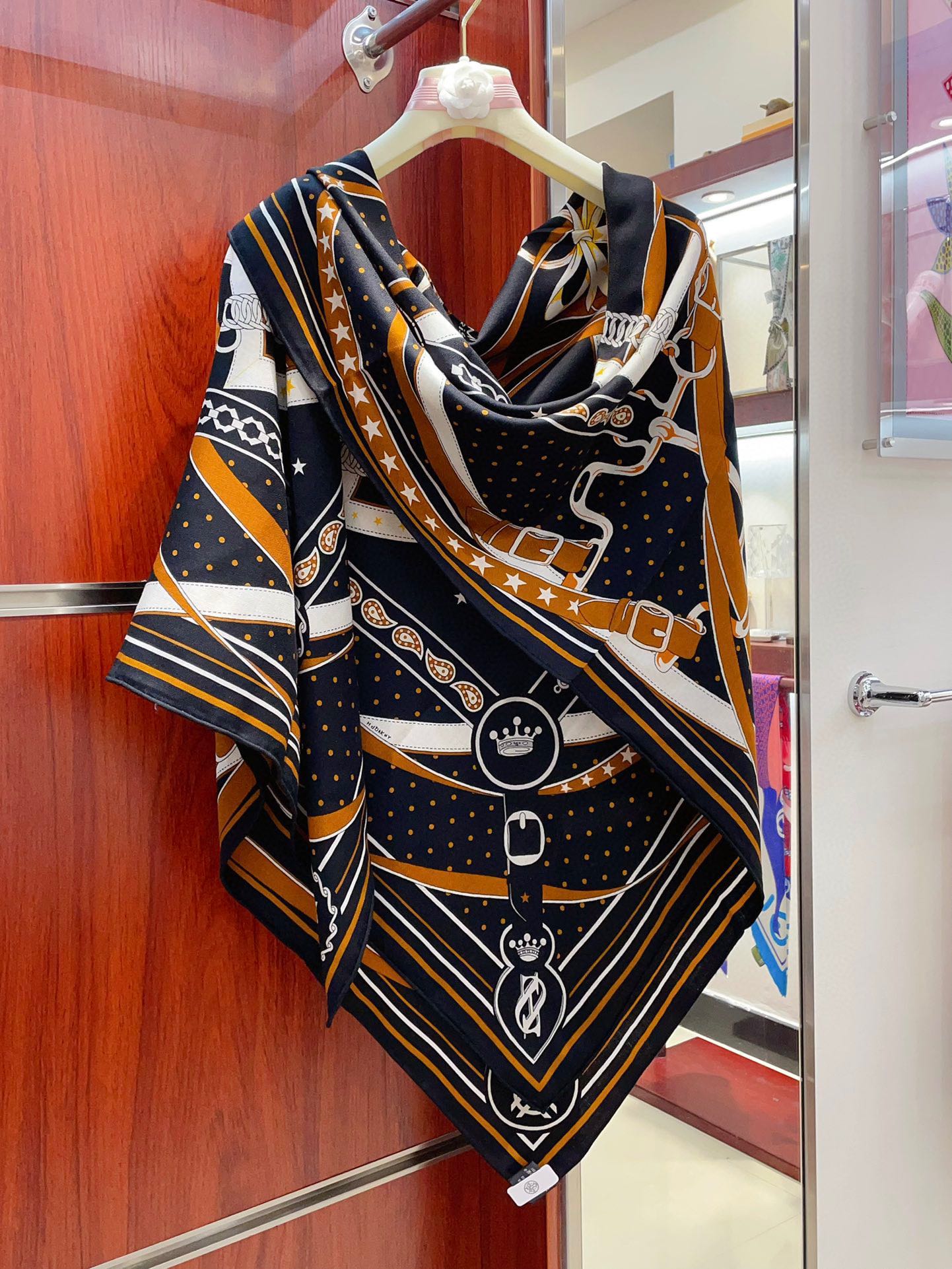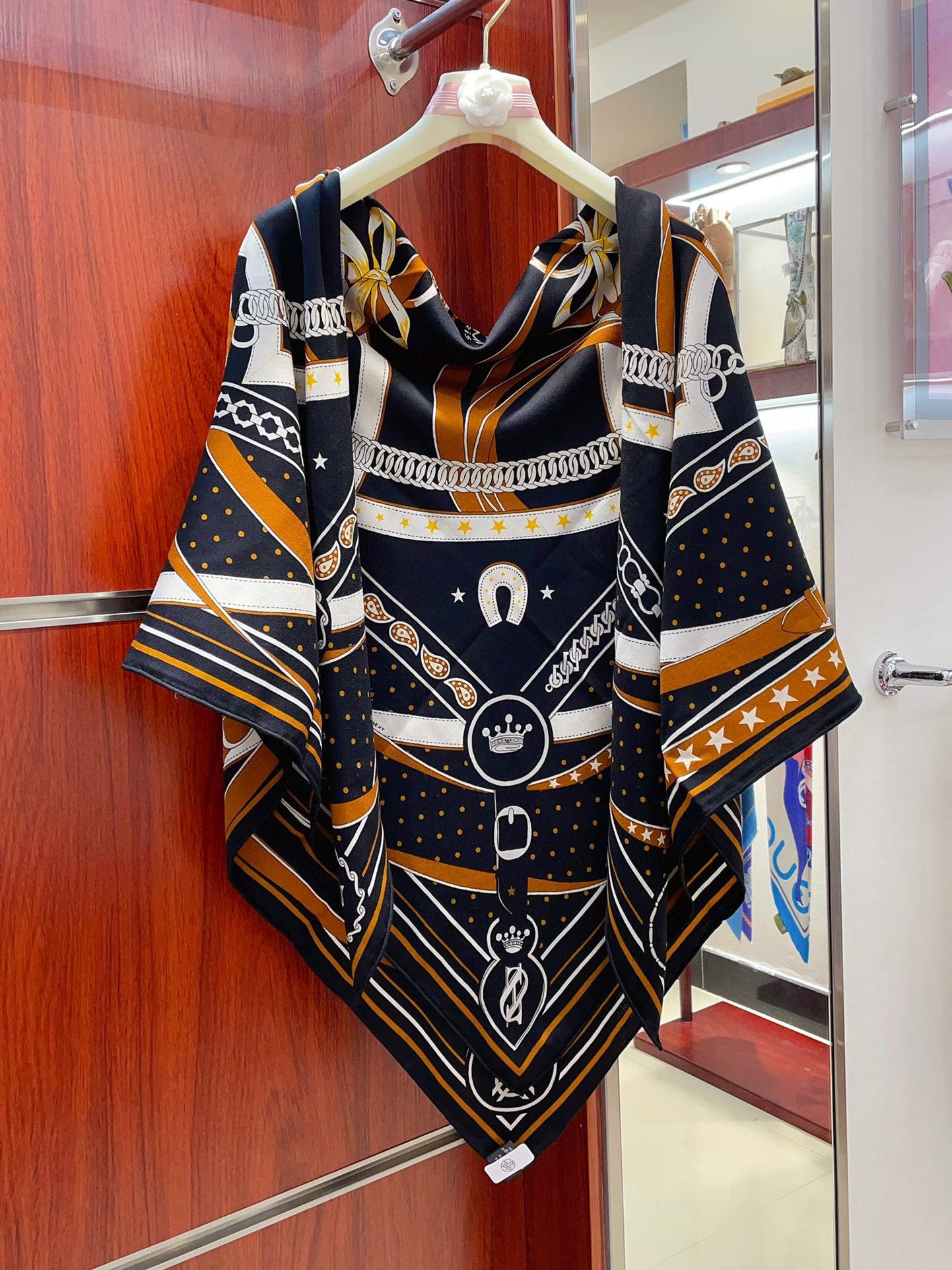 Square Scarf 140CM Black Mix Orange White Cashmere And Silk