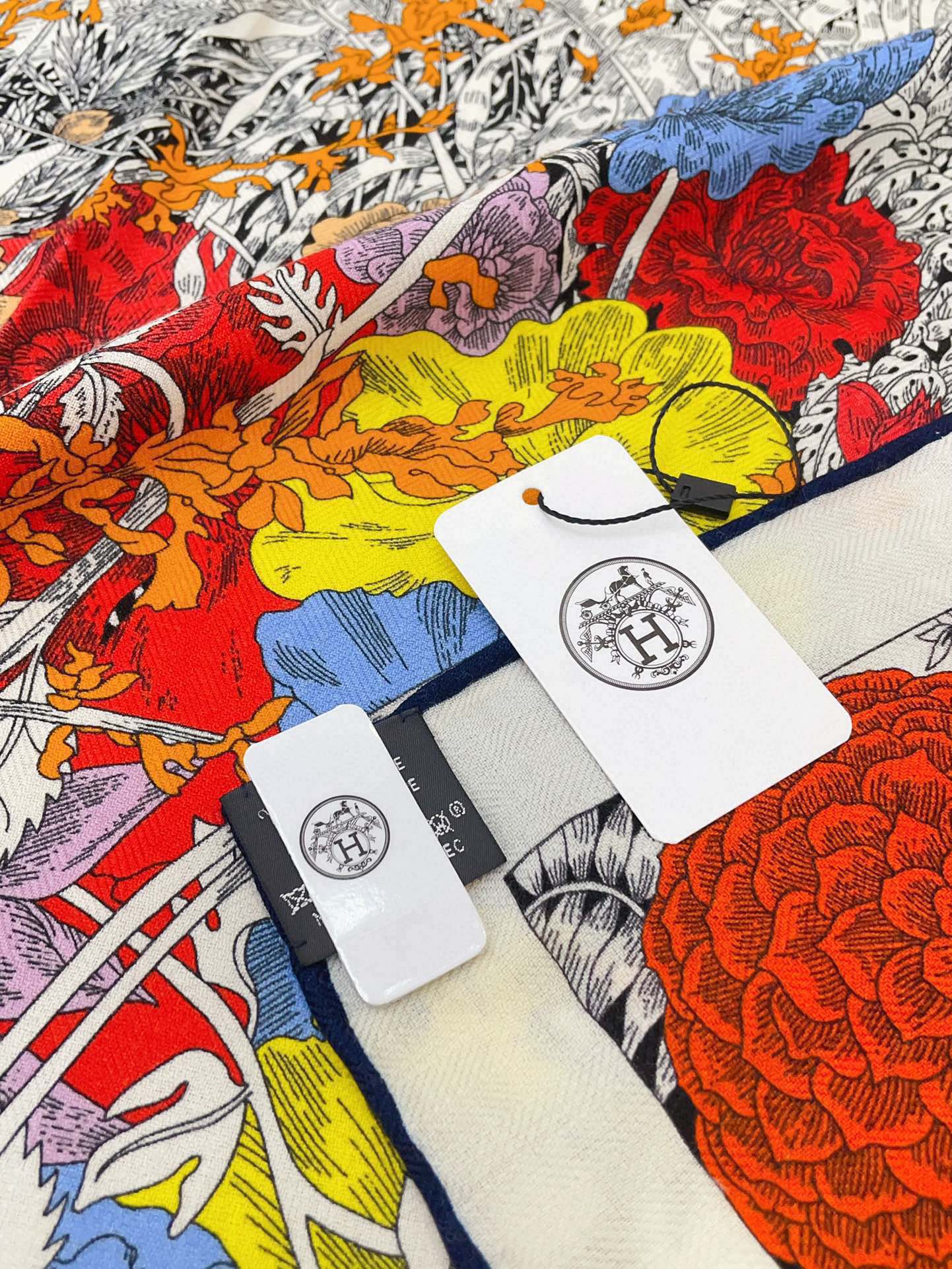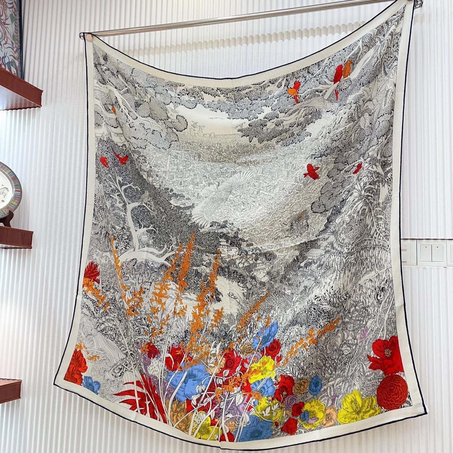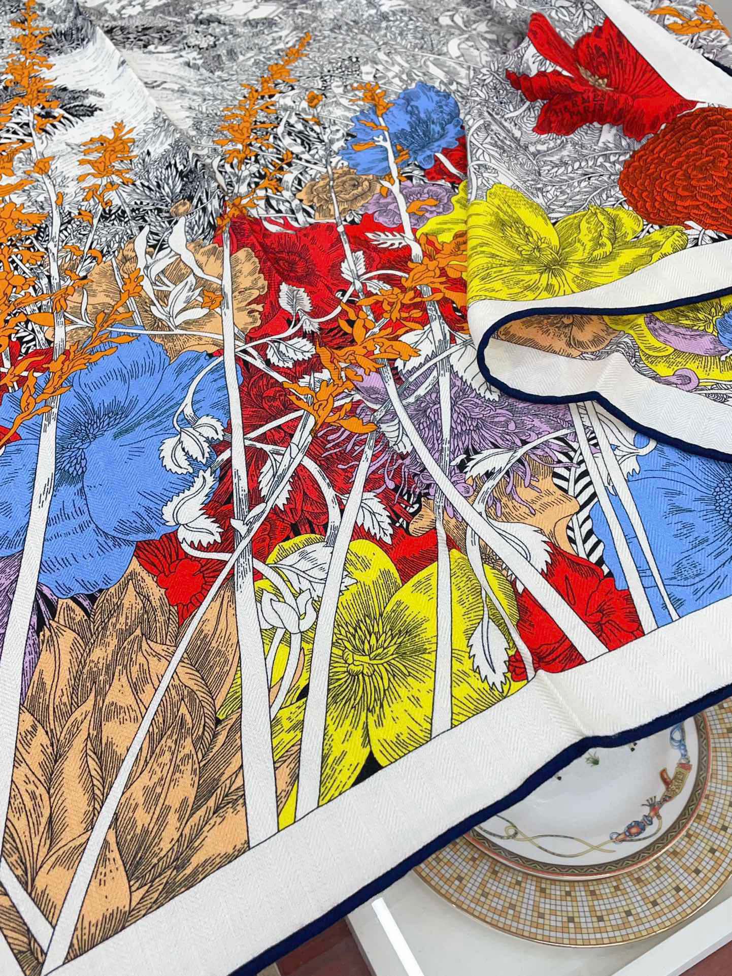 Square Scarf 140CM In Grey White Colorful Cashmere And Silk