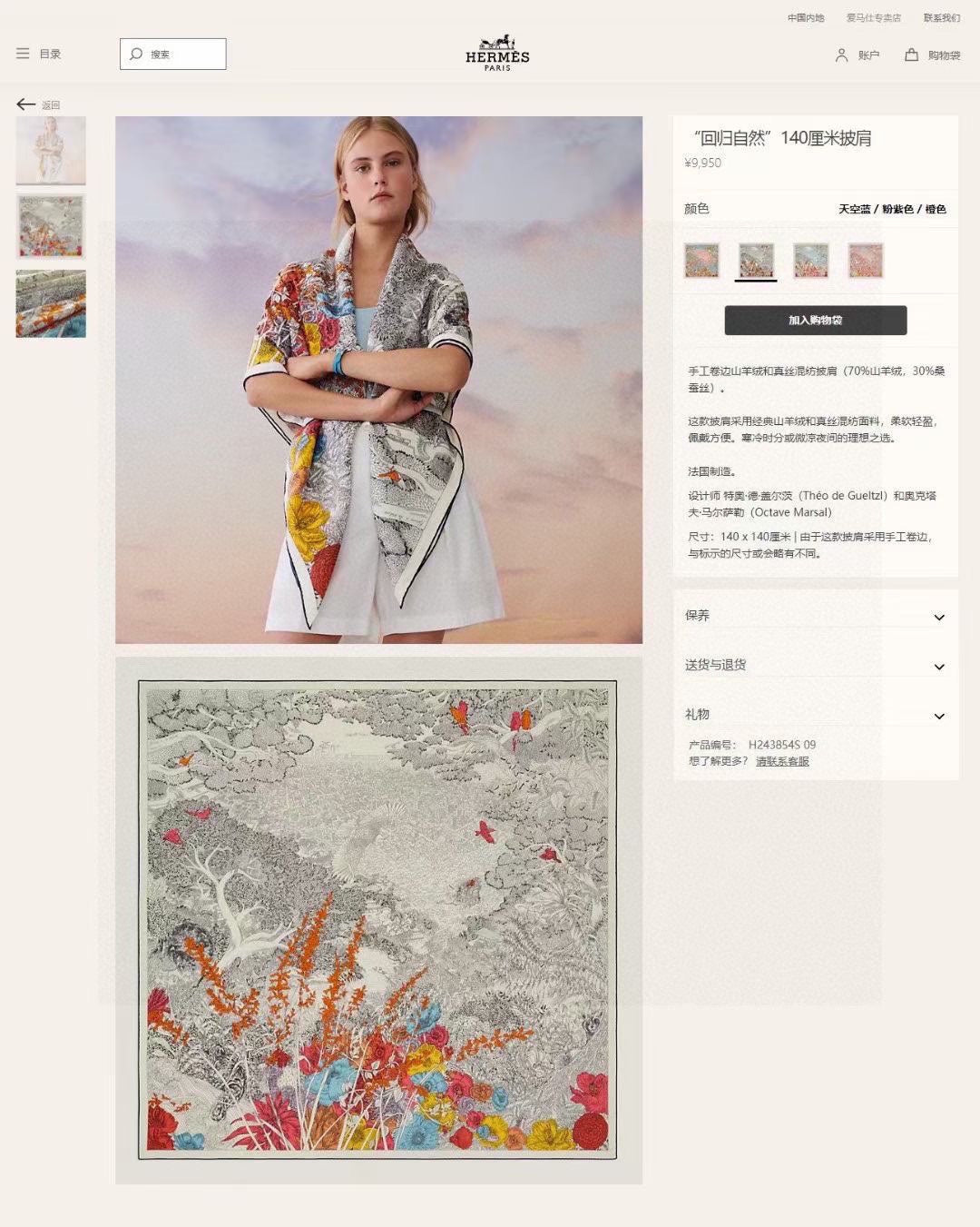 - Material: 70% Cashmere, 30% Silk
