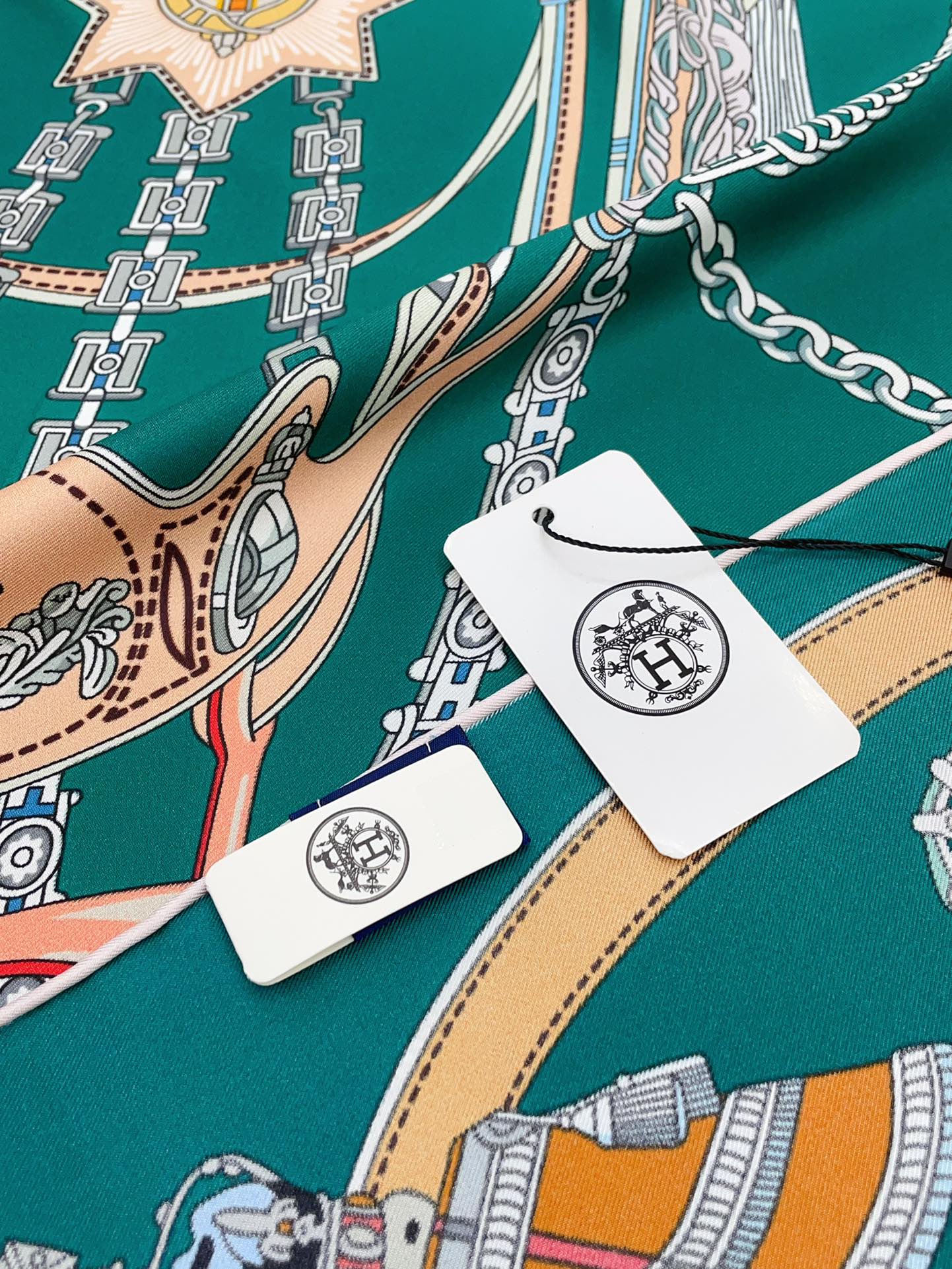Stately Wheels Scarf 90 CM Dark Green Colorful Silk Twill 312875