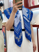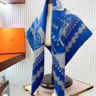 Zouaves Et Dragons Bandana Shawl 90 CM In Blue Colorful Silk Twill 262789